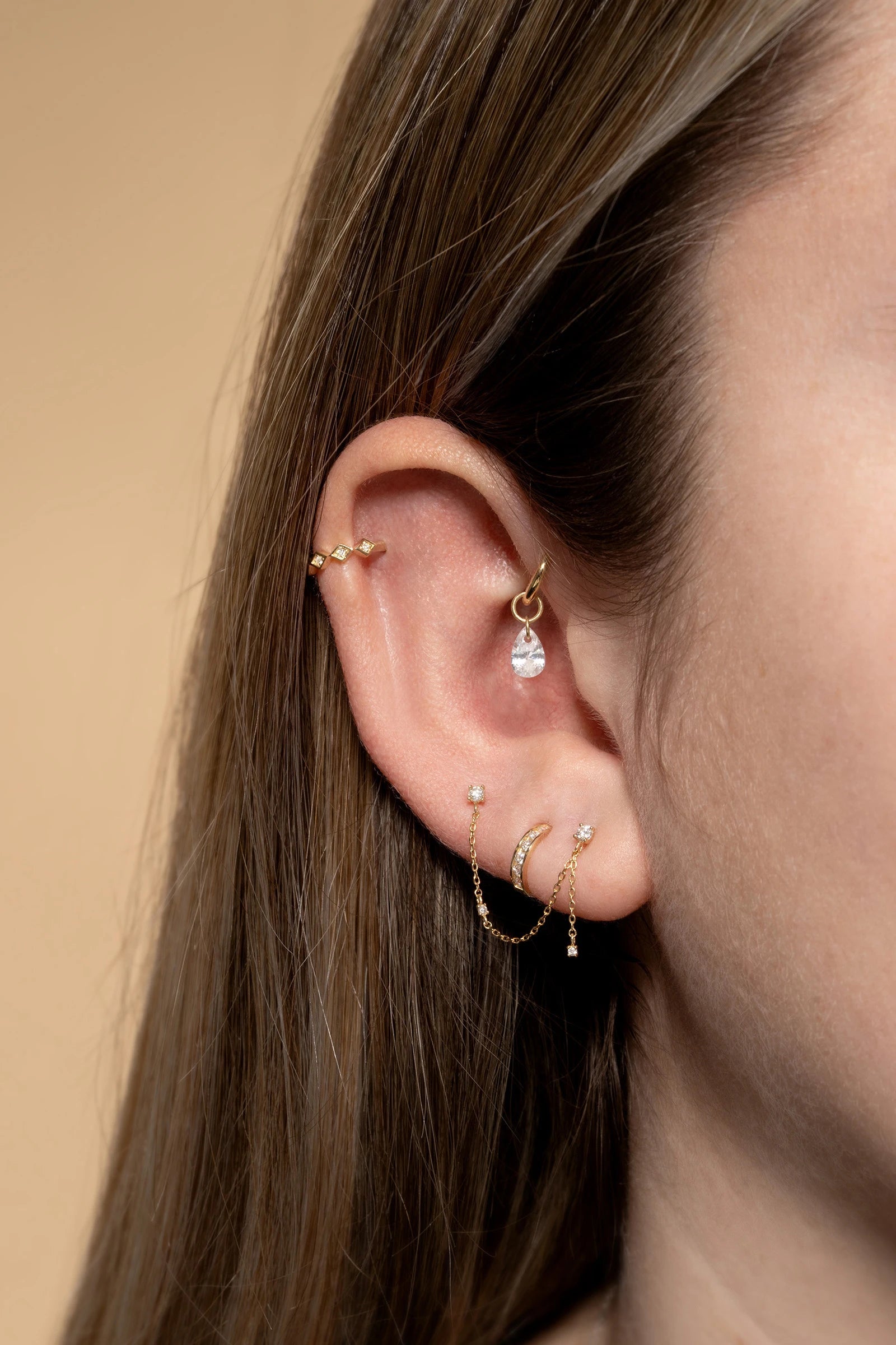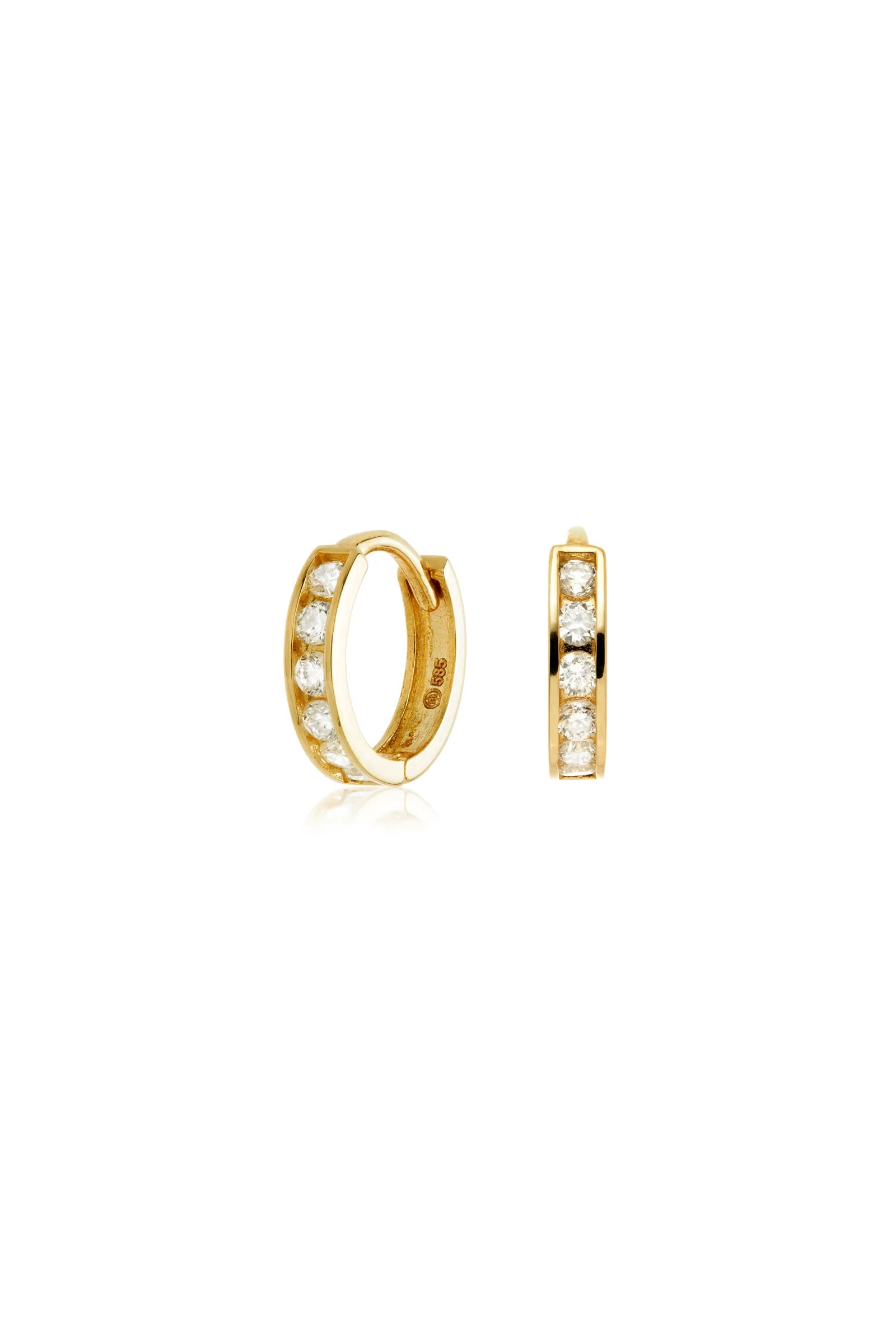 Solid 14ct Gold Diamond Huggie Earrings - Gold