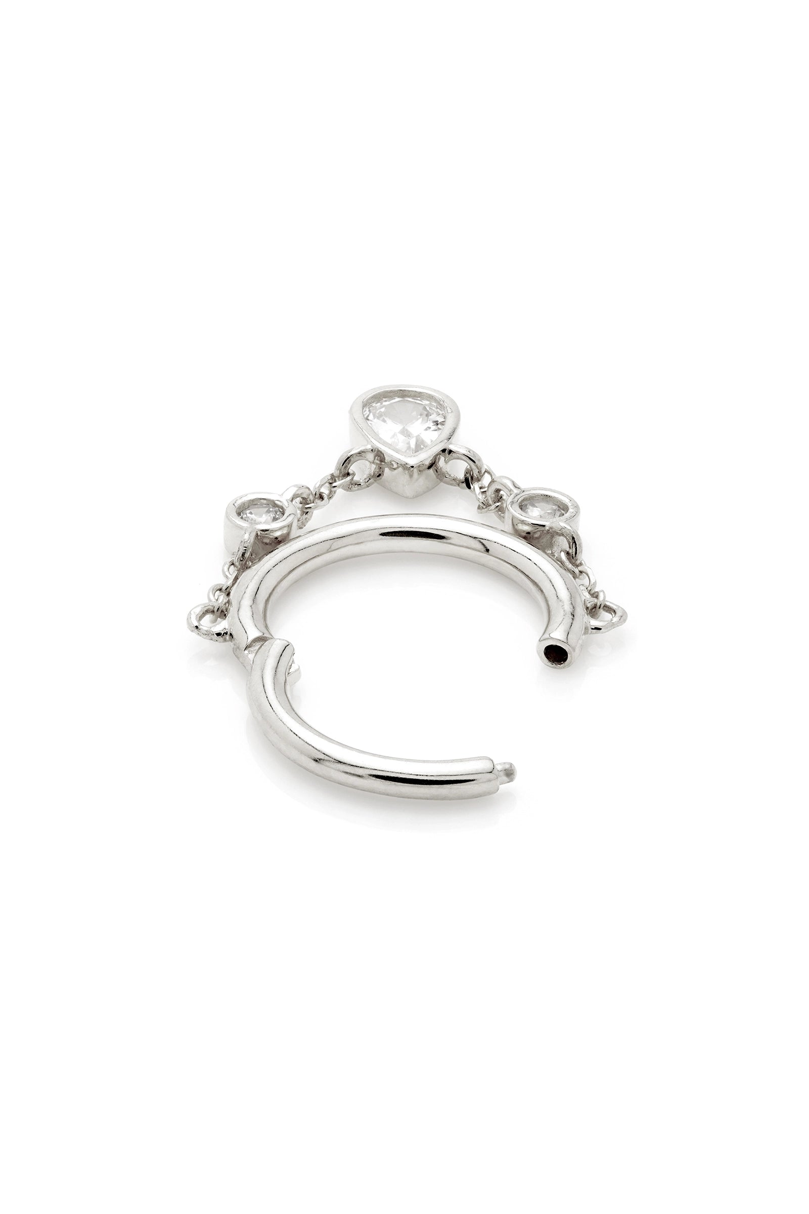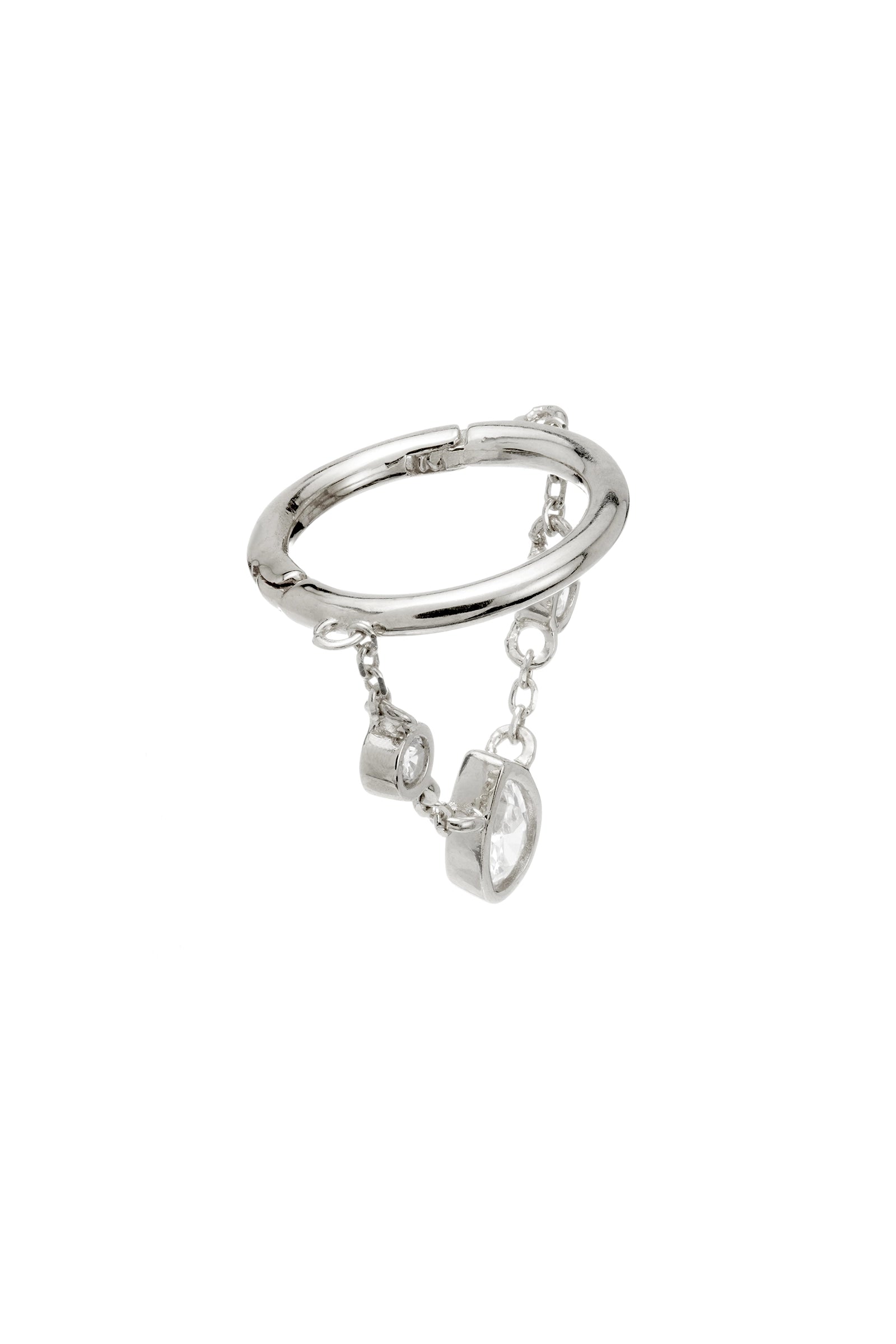 Solid Gold Hinged Earring with Hanging Chain and Gems - White Gold