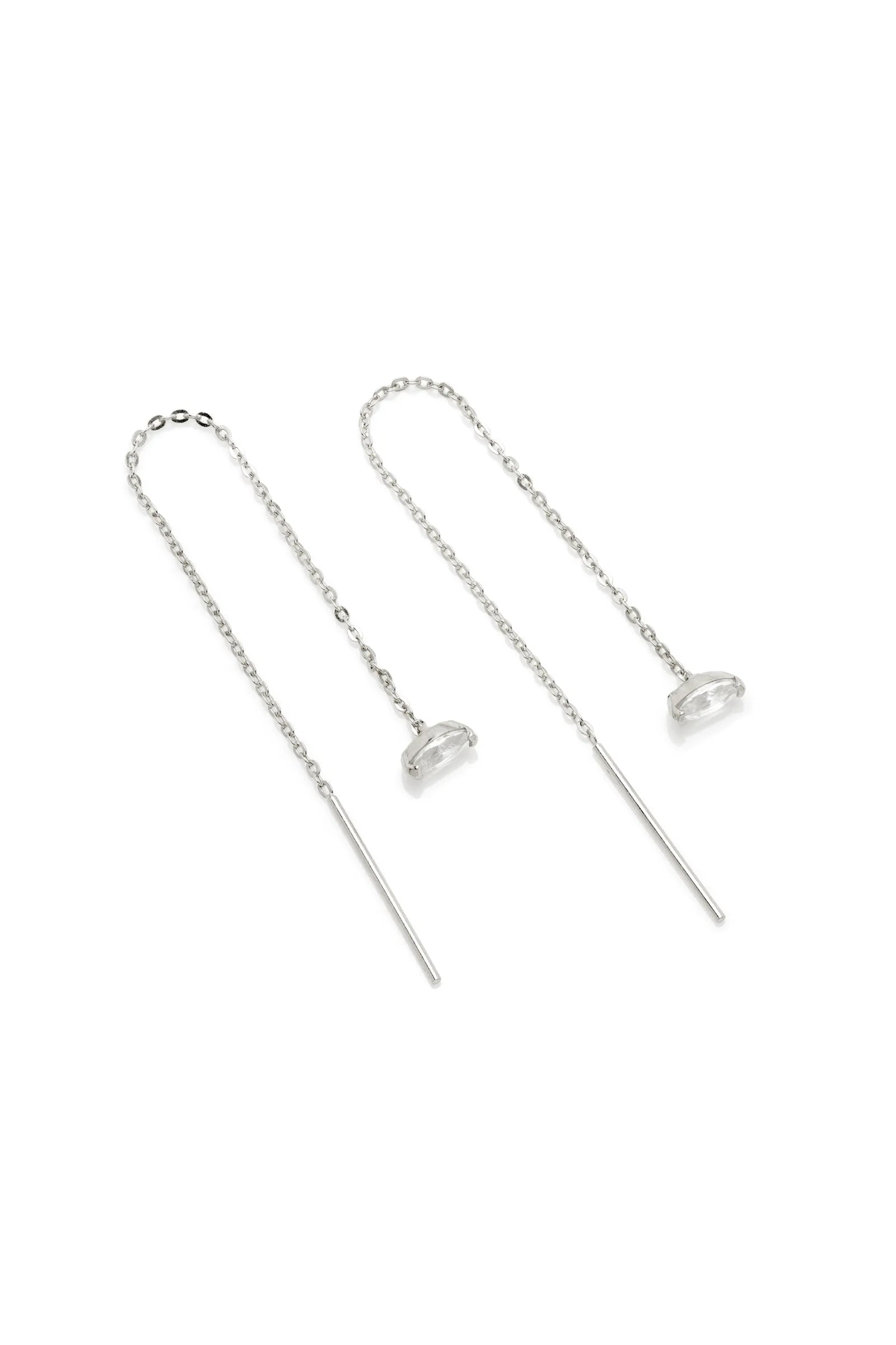 Stylish, versatile and full of sparkle. These solid white gold threader earrings feature a single marquise-cut white topaz gem suspended on a solid gold chain. These threaders can be styled multiple ways for a look that feels uniquely yours.