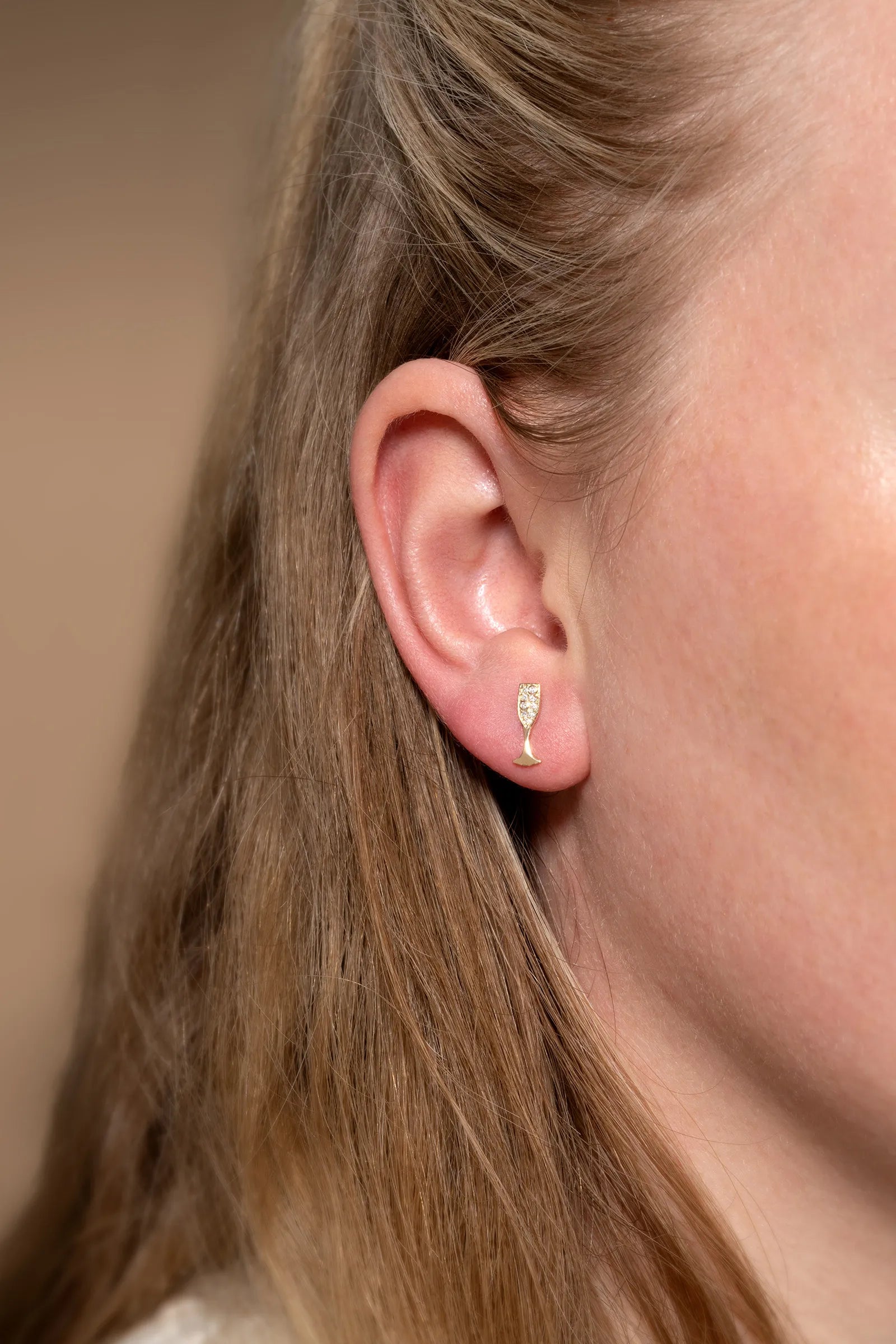Solid 14ct Gold Champagne Flute Diamond Stud Earrings - Gold