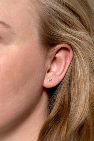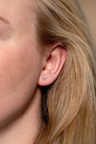 Solid 14ct Gold Lightning Bolt Threadless Flatback Stud Diamond Earring - White Gold