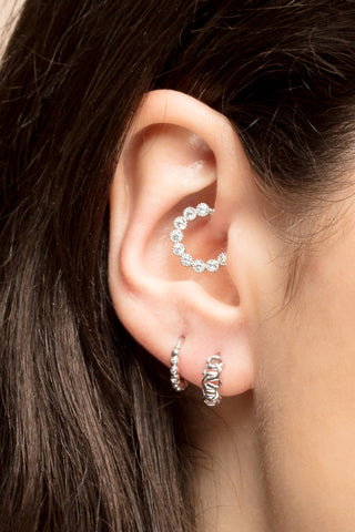 Solid Gold Jewelled Tear Hinged Daith & Septum Ring - White Gold