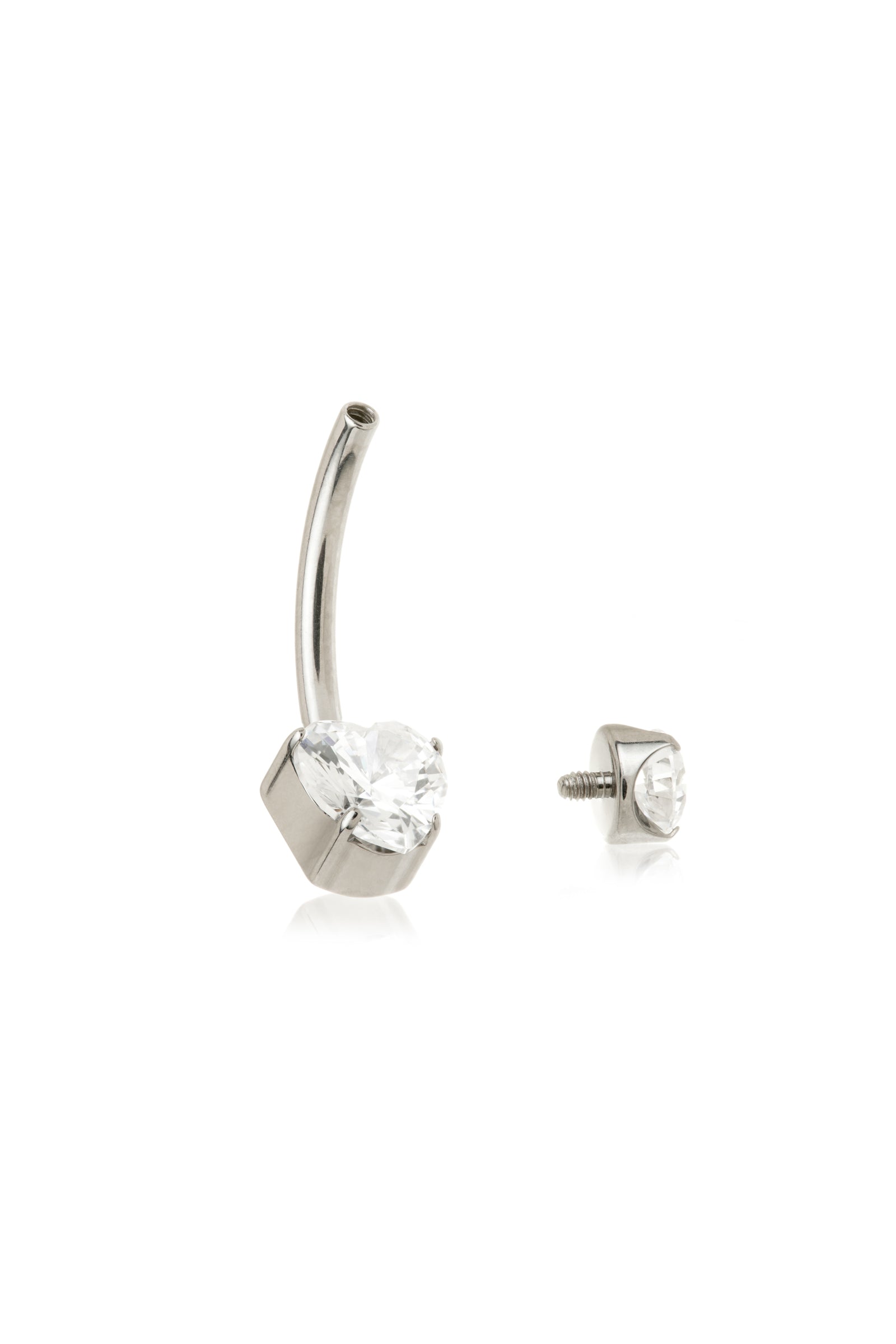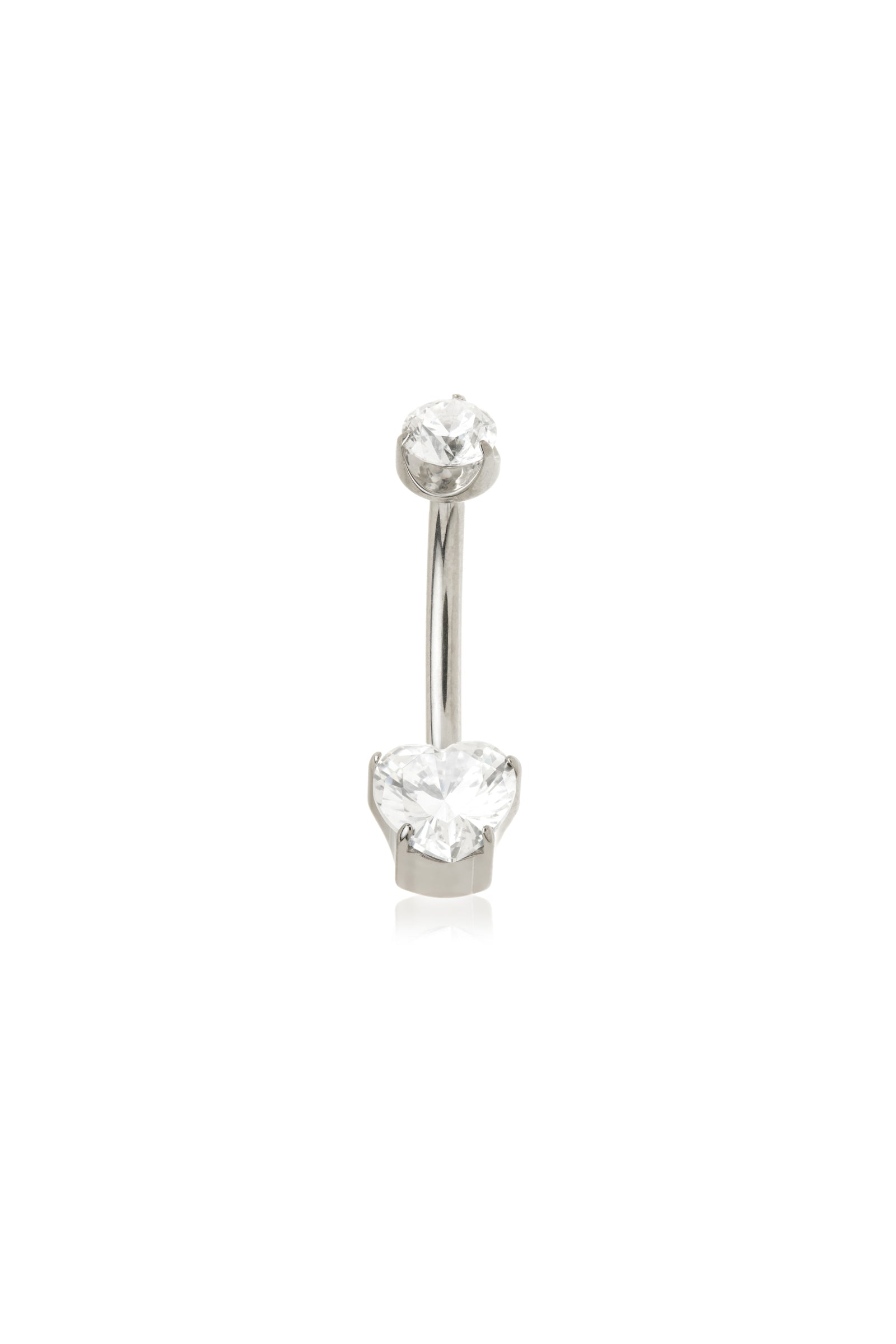 Titanium Jewelled Heart Navel Bar - Highly Polished Titanium
