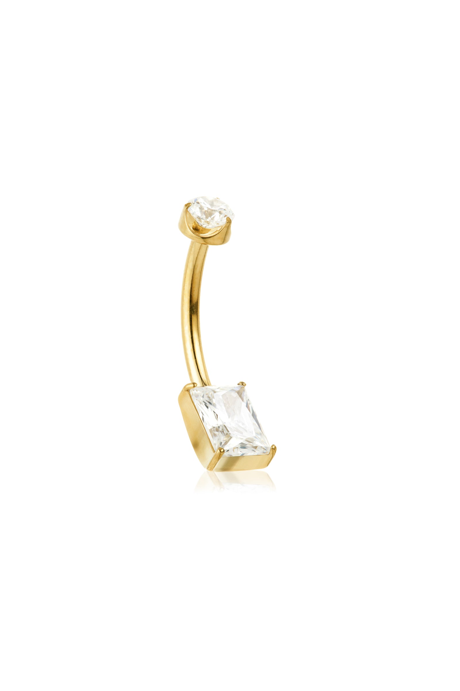 This sleek navel bar features an eye-catching rectangular-cut gem in a low-profile setting - minimal, polished and designed for comfortable wear.