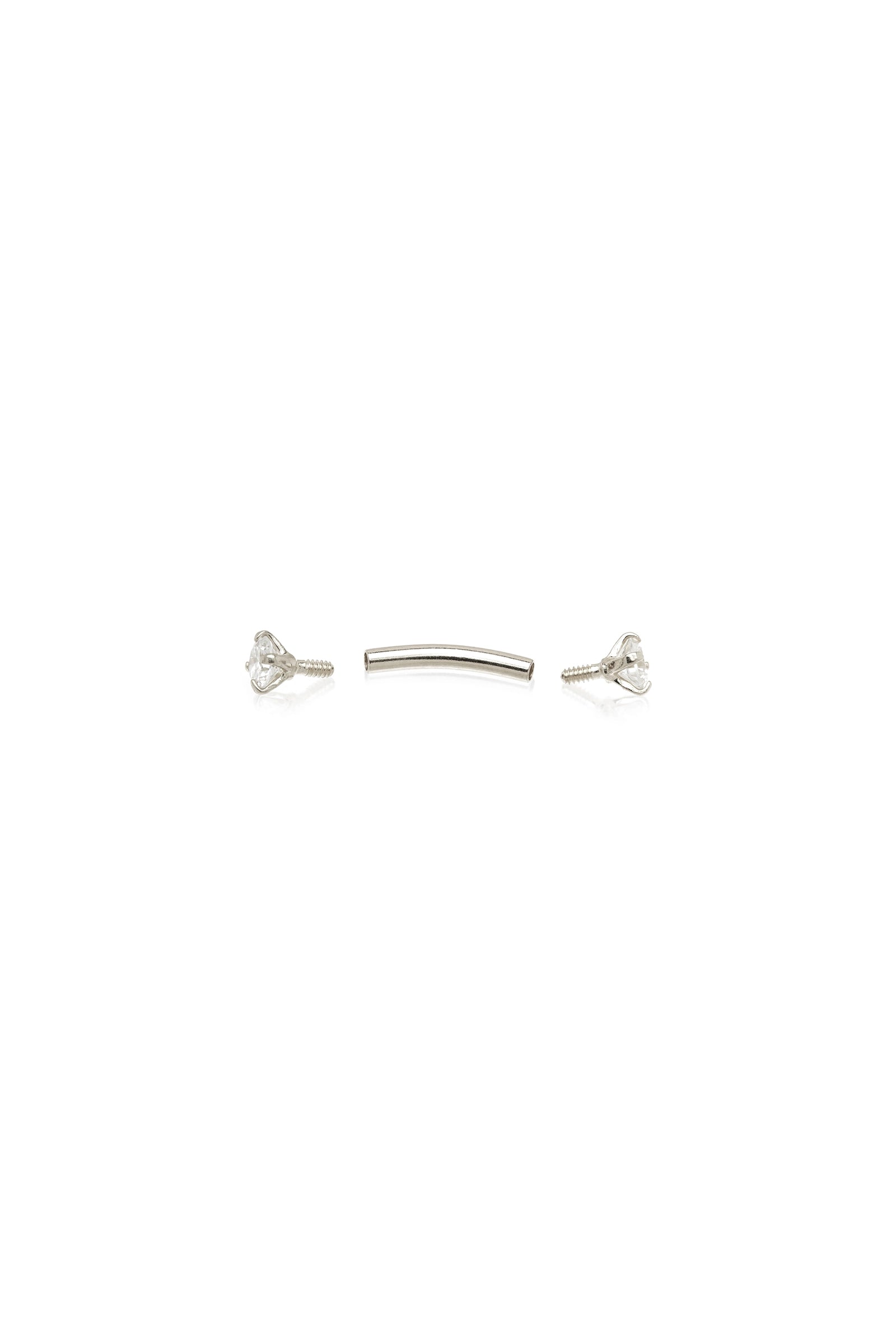 A sparkling 2.5mm diamond at each end of this solid white gold rook bar brings clean symmetry and sparkle to rook or cartilage placements.