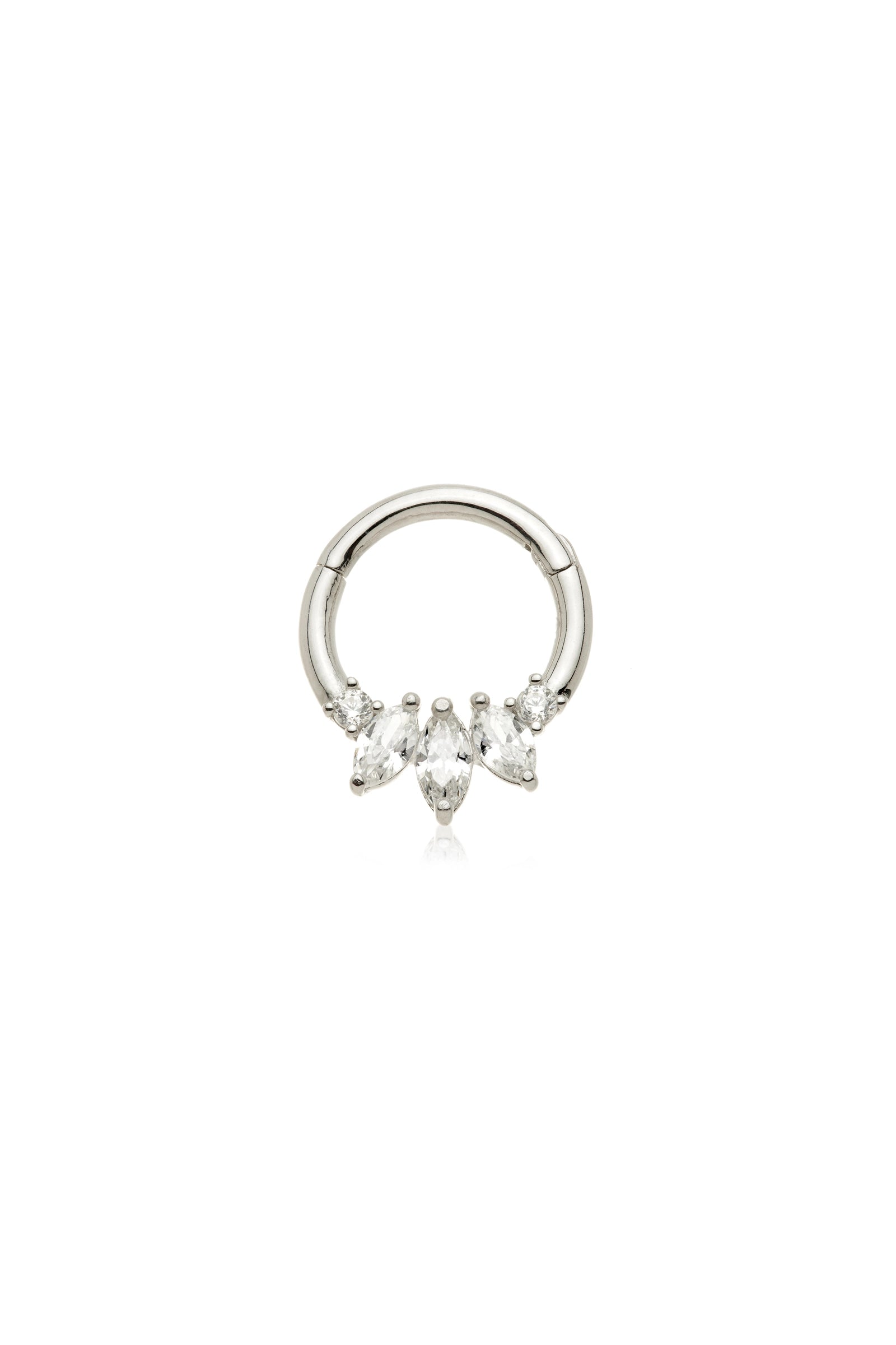Solid Gold Triple Marquise Hinged Daith & Septum Ring - White Gold
