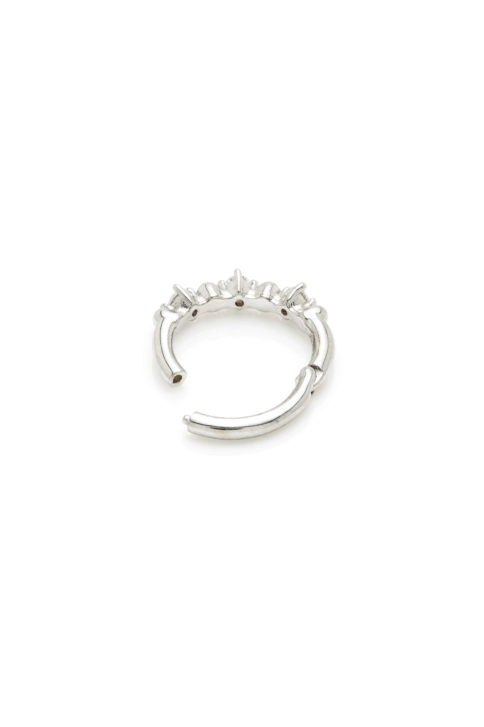 This hinged solid gold earring features a row of sparkling prong-set cubic zirconia gems framed by polished gold beads. A balanced design that works across multiple placements.