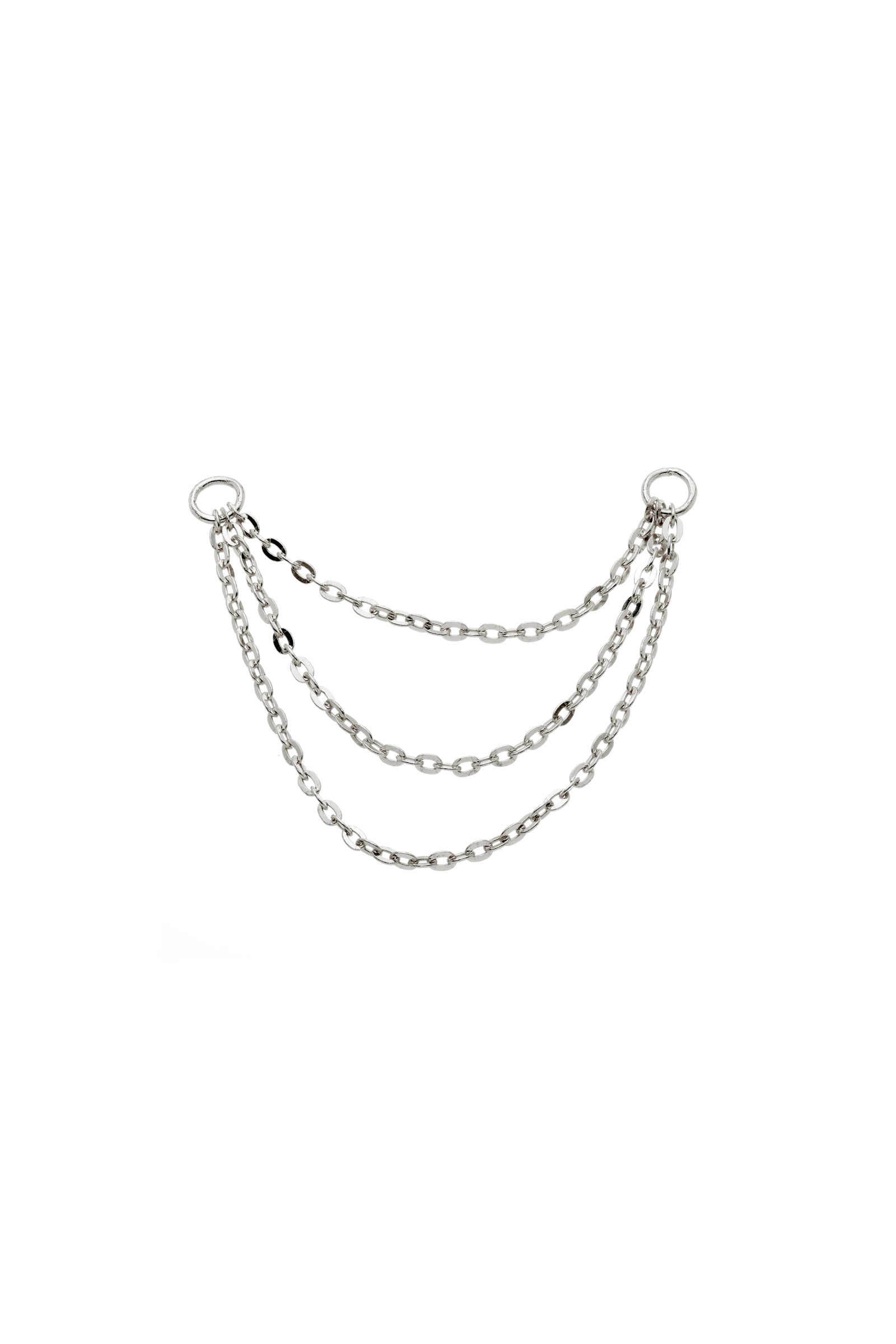 A solid gold triple chain charm designed to loop neatly around your bar jewellery. Available in multiple length combinations, each one adds subtle movement and layered detail to your styling.