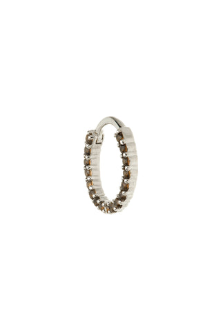 Solid 14ct Gold Front Facing Hinged Daith & Septum Ring with Pavé Smoky Quartz Gems - White Gold