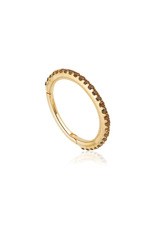 Solid 14ct Gold Front Facing Hinged Daith & Septum Ring with Pavé Smoky Quartz Gems - Gold