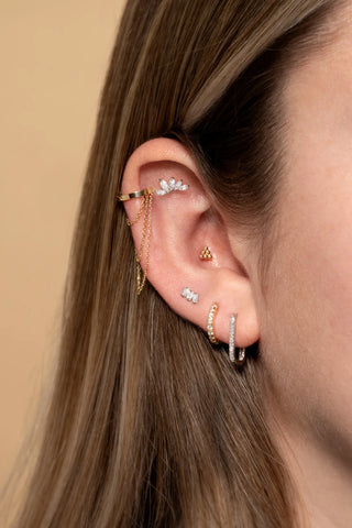 Marquise Gem Crescent Solid Gold Barbell Earring