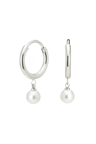 Solid 14ct Gold Threader Earrings with Pearl & Diamond - White Gold