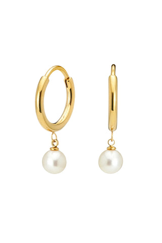 Solid 14ct Gold Flat Back Stud with Square Diamond and Hanging Pearl - Gold