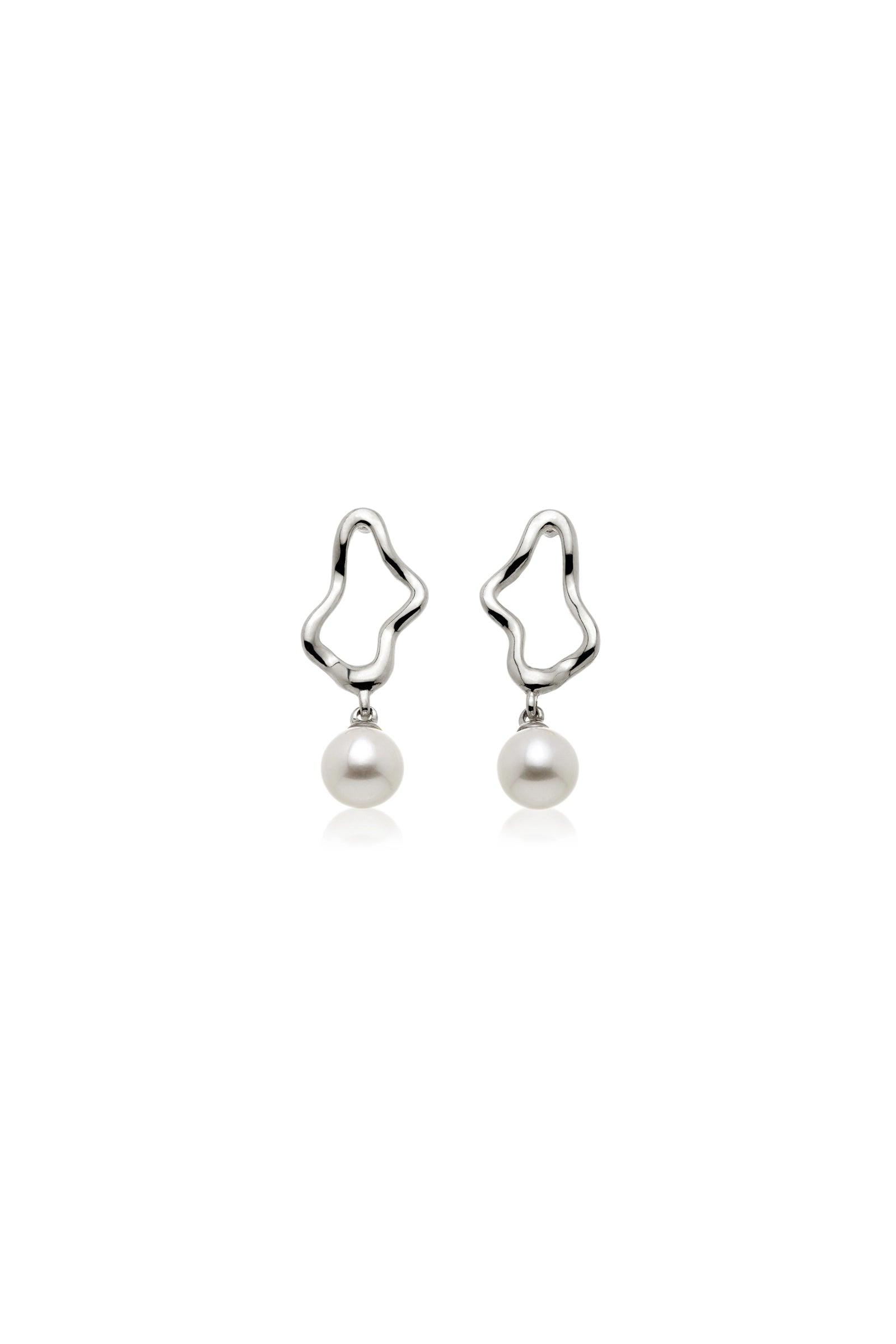 A playful and quirky twist on a classic pearl earring. These wavy solid white gold stud earrings bring movement and charm, finished with a 4mm freshwater pearl drop for a touch of softness.