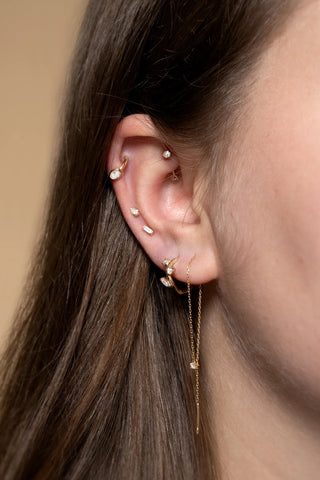 Solid 14ct Gold Hinged Earring with Hanging and Pavé Diamonds - Gold