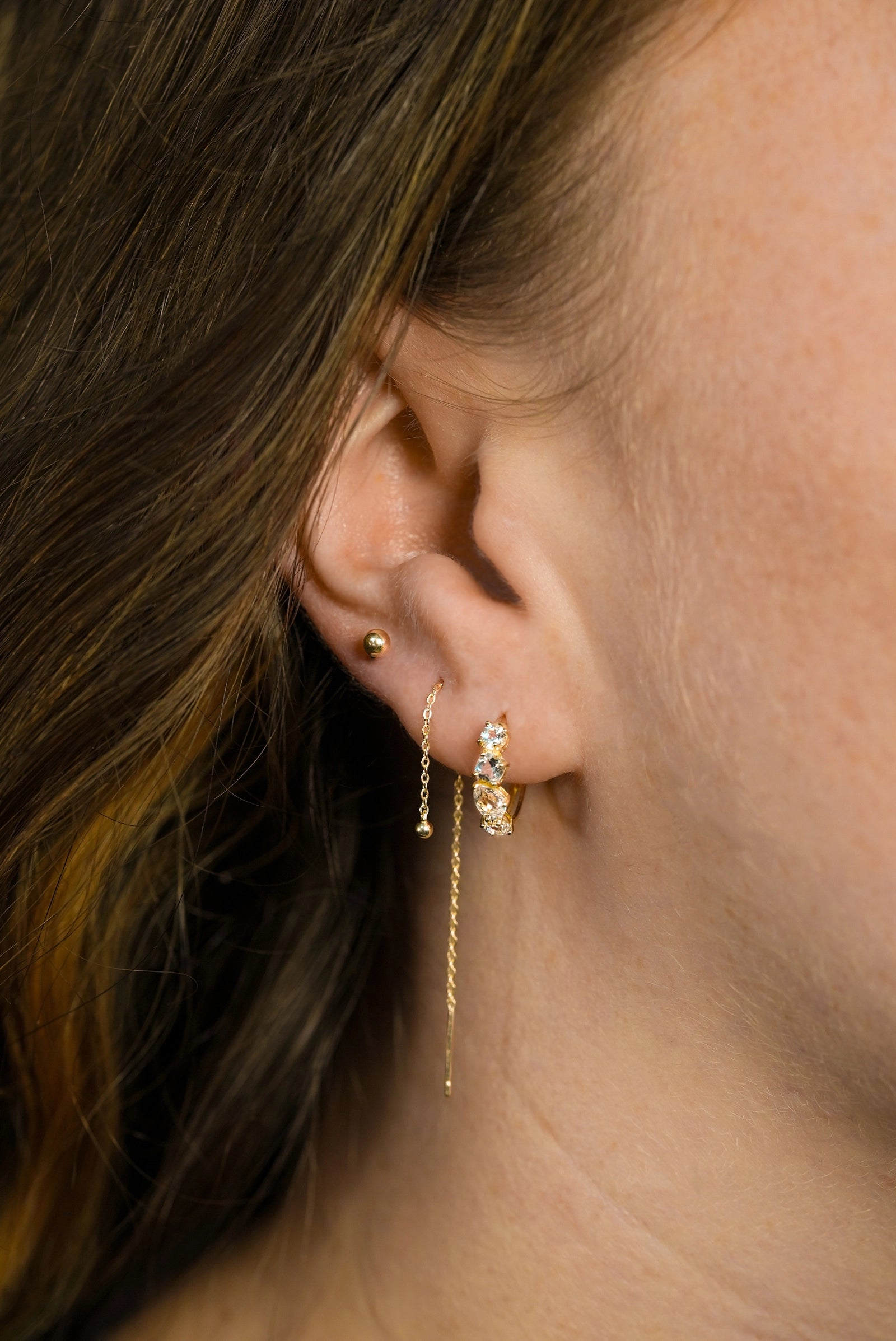 Solid Gold Multi-Shaped Gem Hoop Earrings - Gold