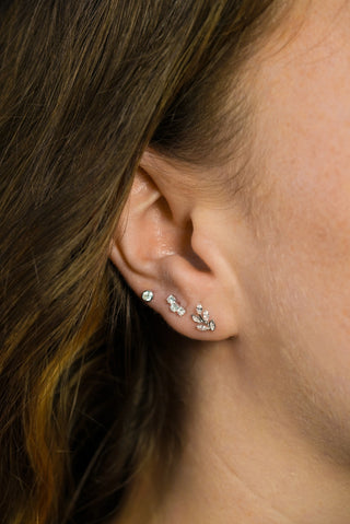 Solid 14ct Gold Teardrop Cluster Threadless Flat Back Stud Diamond Earring - White Gold