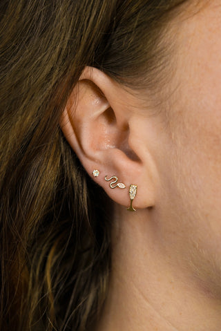 Solid 14ct Gold Rope Threadless Flat Back Stud Diamond Earring - Gold