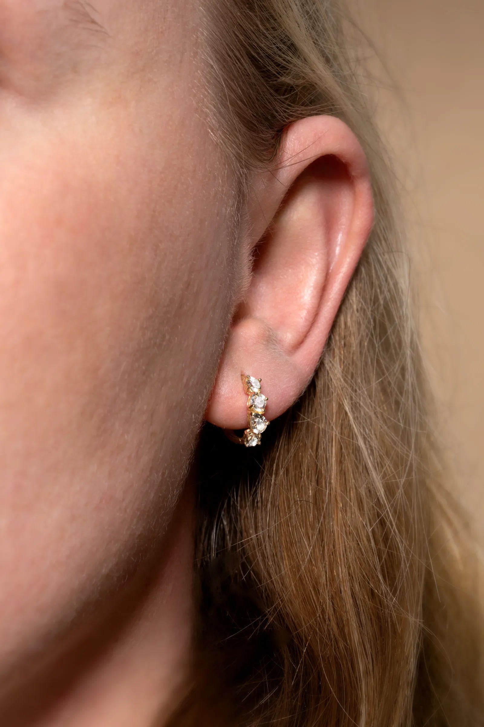 Quirky style with a touch of shimmer. These solid gold hoop earrings feature a single row of multi-shaped white topaz gemstones for a twinkling finish that catches the light. Perfect for everyday wear or stacking with your favourite styles.