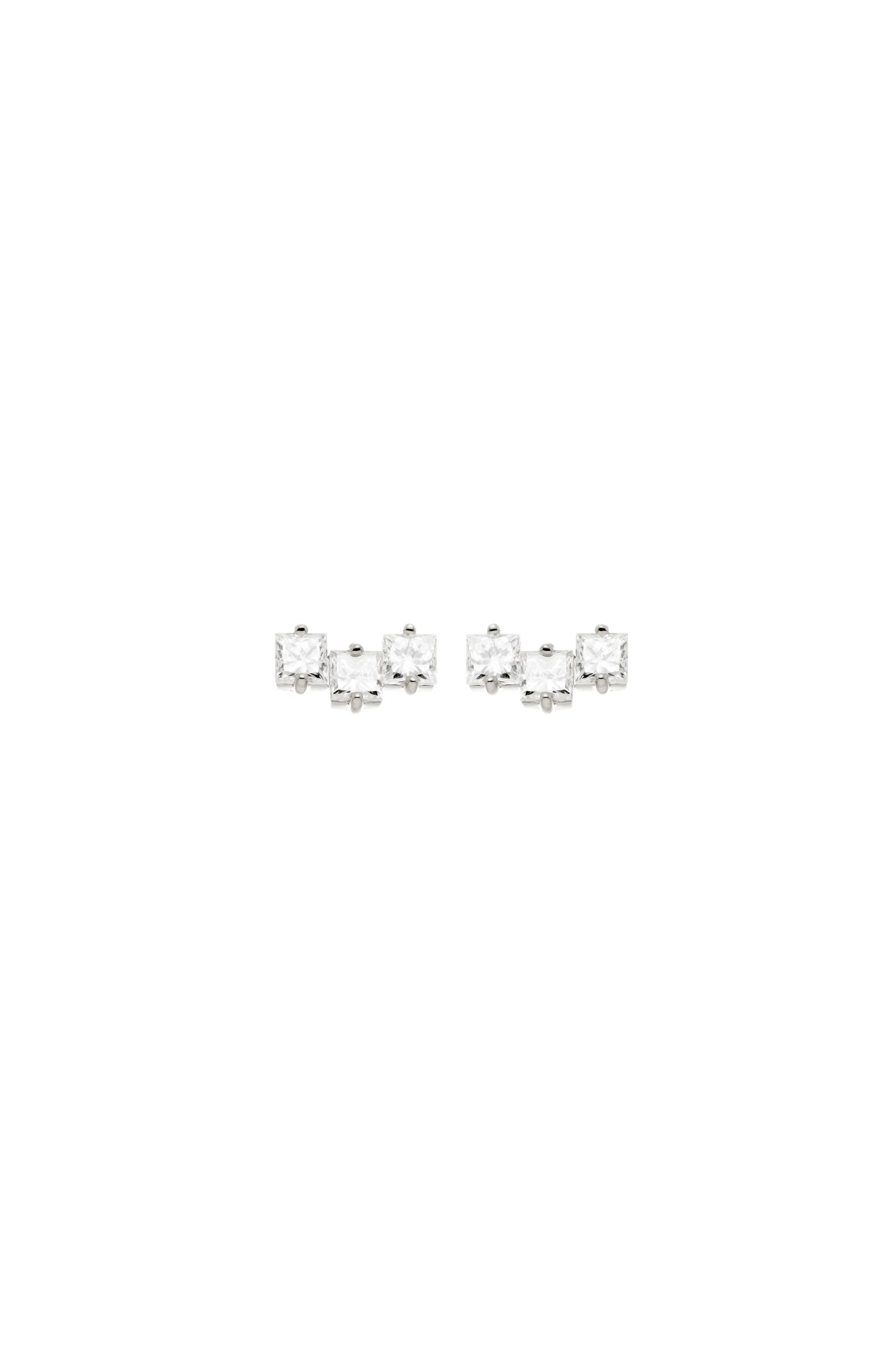 A clean, modern twist on classic sparkle. These solid white gold stud earrings feature three square-cut diamonds in a neat row, perfect for wearing solo or stacking with other pieces for a more layered look.