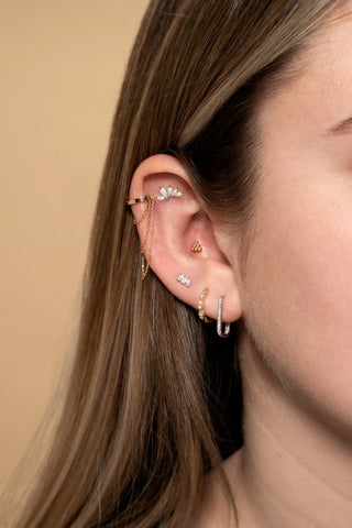 Solid 14ct Gold Marquise Diamond Climber Stud Earrings - White Gold