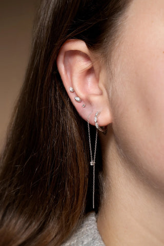 Solid 14ct Gold Hinged Earring with Hanging and Pavé Diamonds - White Gold