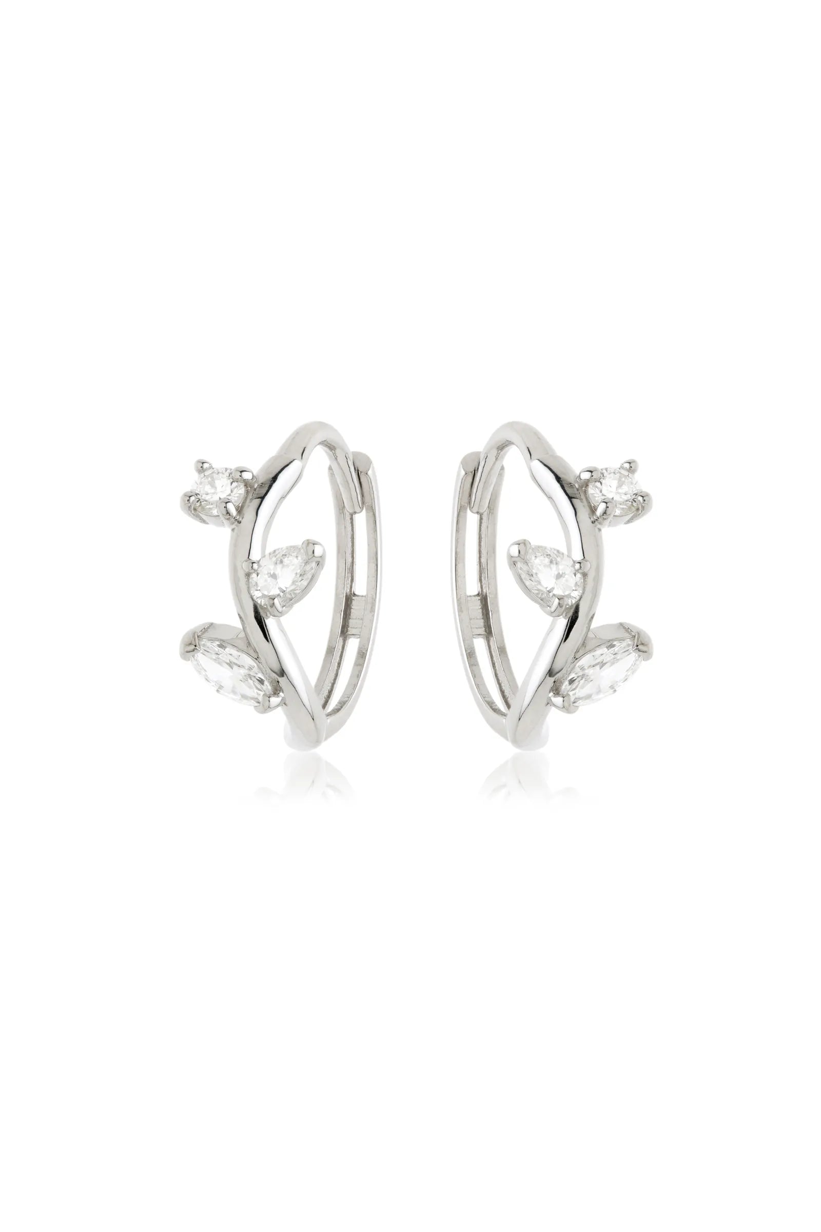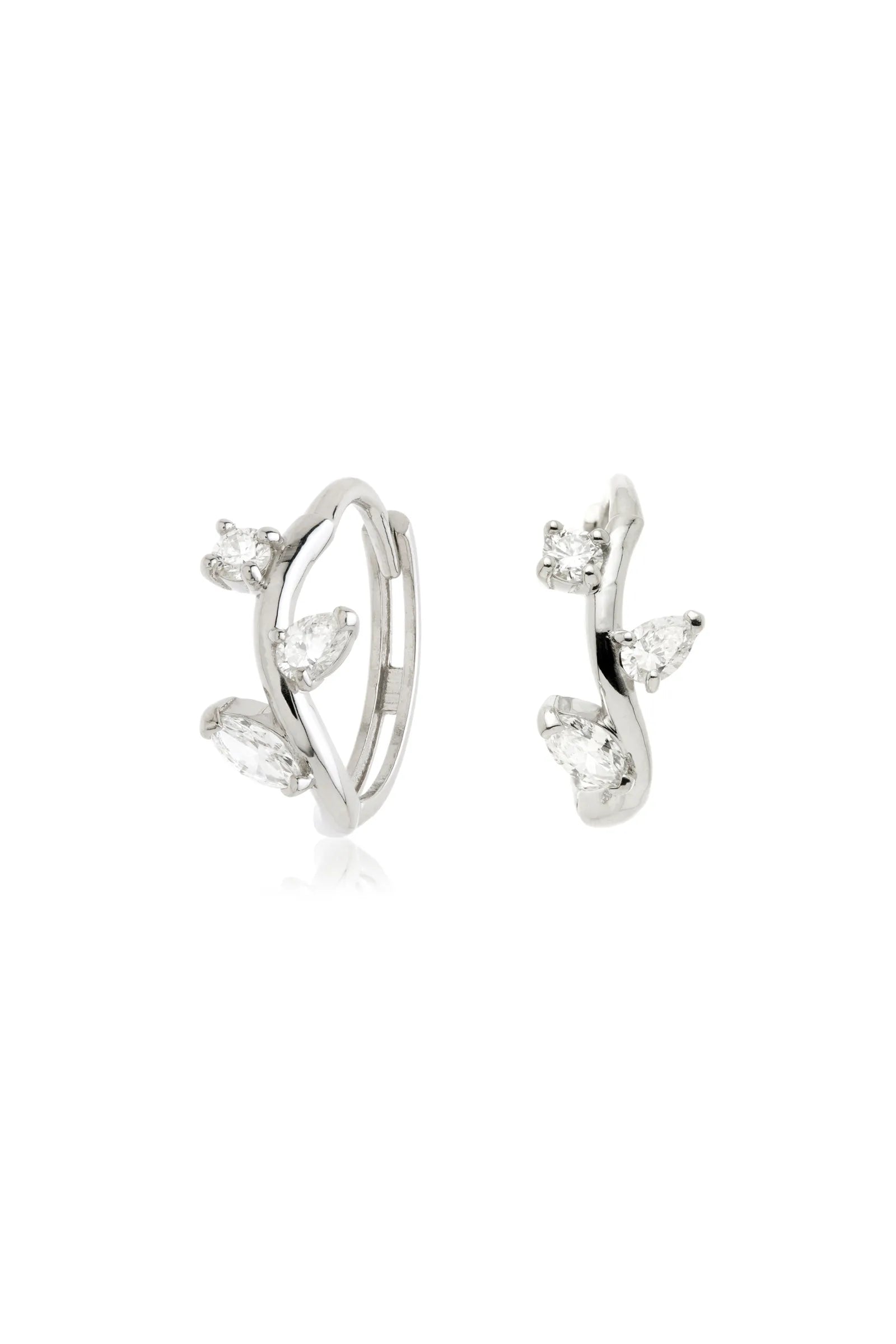 Solid 14ct Gold Vine Hoop Diamond Earrings - White Gold