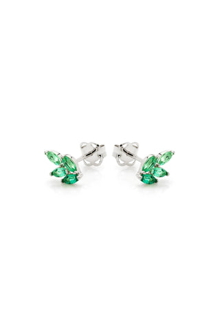 Solid 14ct Gold Threadless Flat Back Stud Earring with Triple Marquise and Hanging Diamonds - White Gold