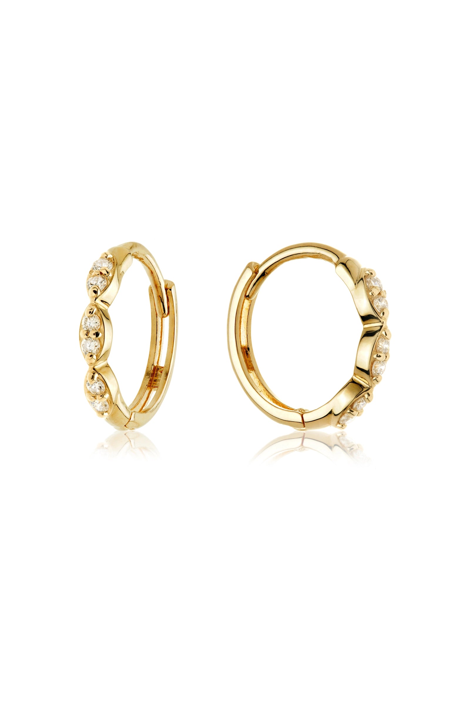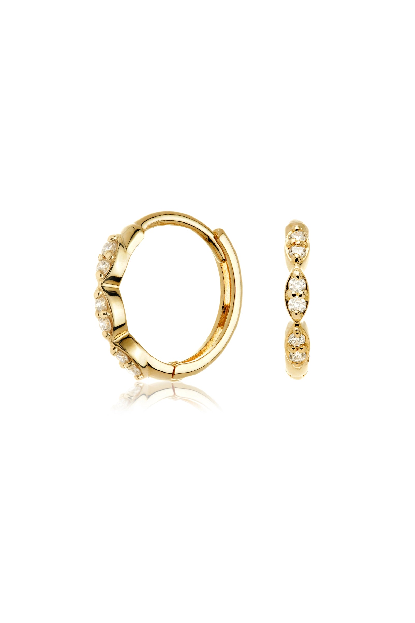 Subtle and playful sparkling diamond earrings. These solid gold hoop earrings are set with brilliant-cut diamonds in a marquise-inspired pattern - subtle enough for day-to-day wear, with plenty of sparkle for special occasions.