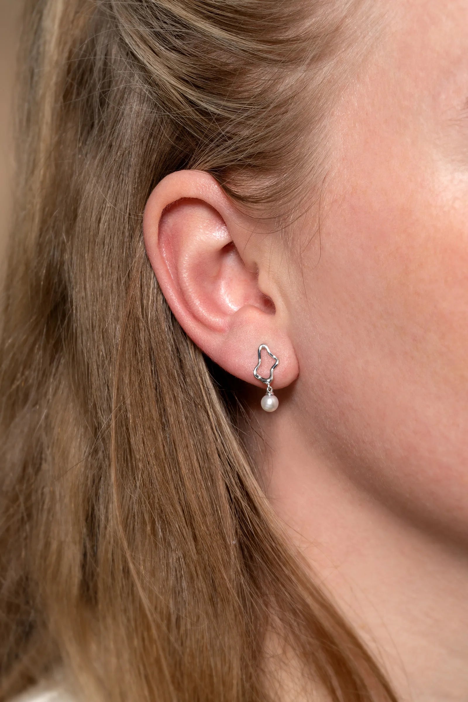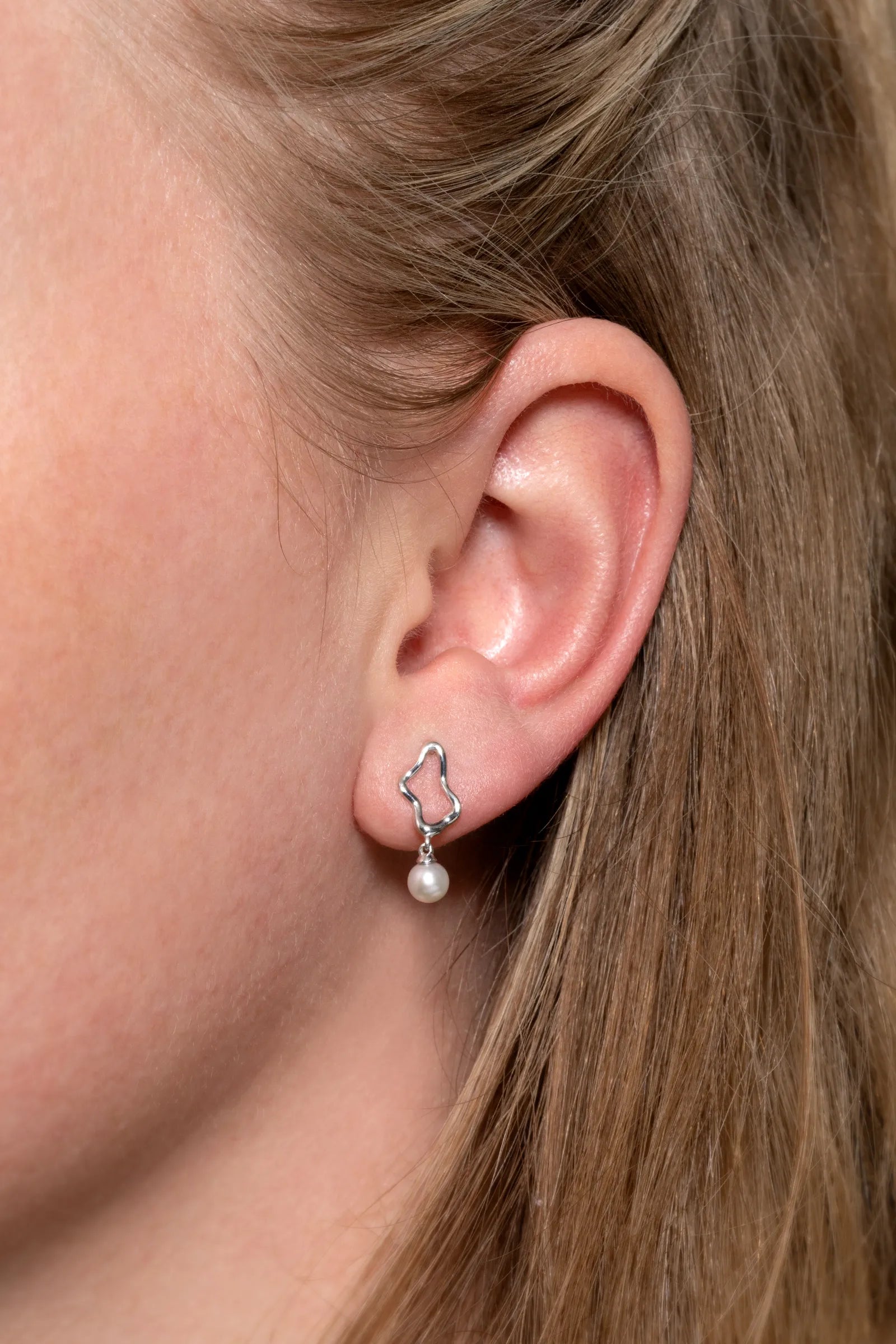 A playful and quirky twist on a classic pearl earring. These wavy solid white gold stud earrings bring movement and charm, finished with a 4mm freshwater pearl drop for a touch of softness.