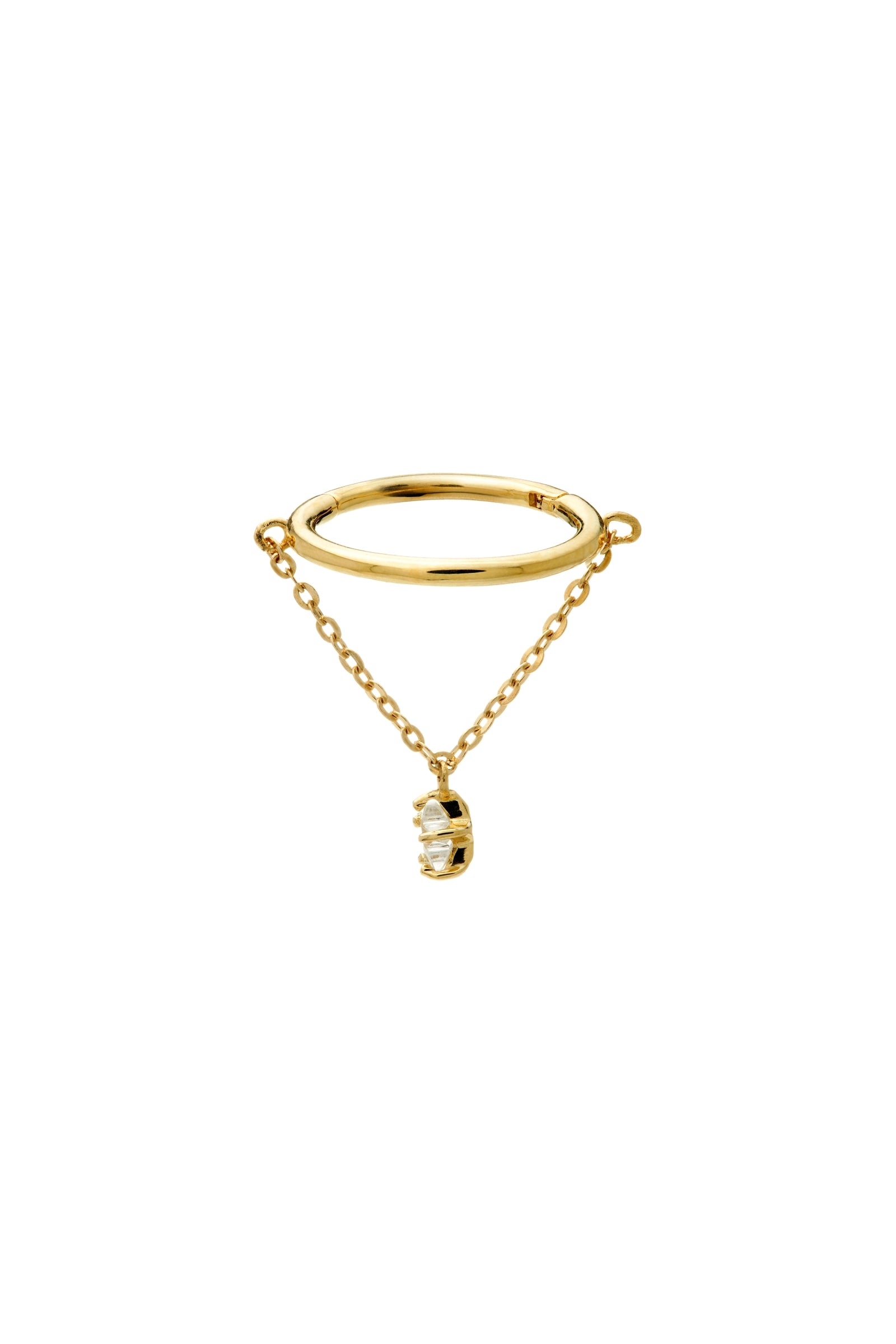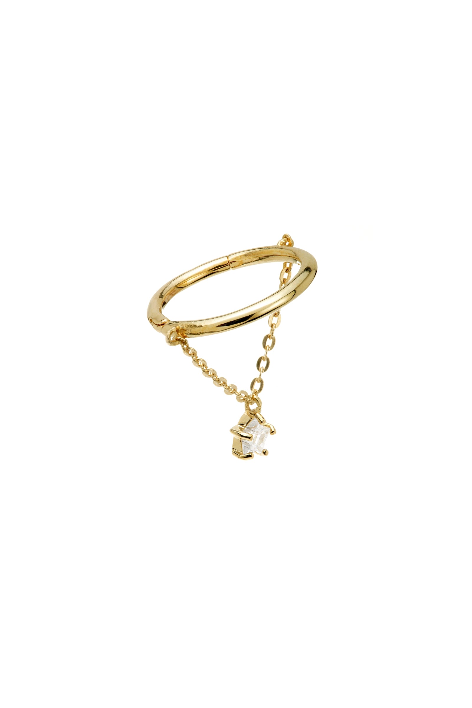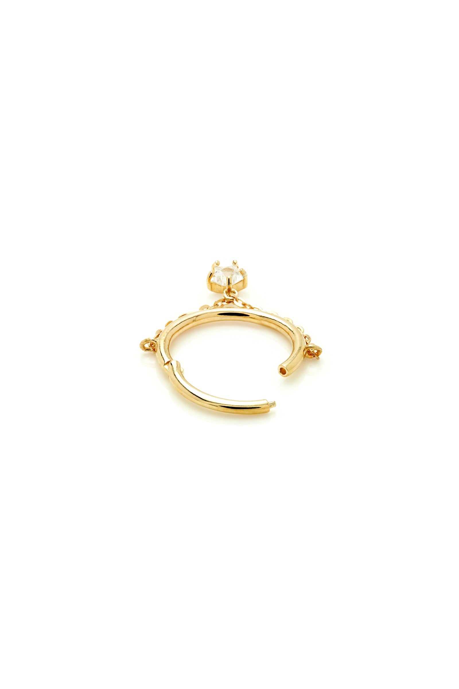 Solid Gold Conch Earring with Hanging Jewelled Star - Gold