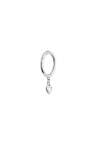 Solid Gold Hinged Earring With Jewelled Heart Charm - White Gold