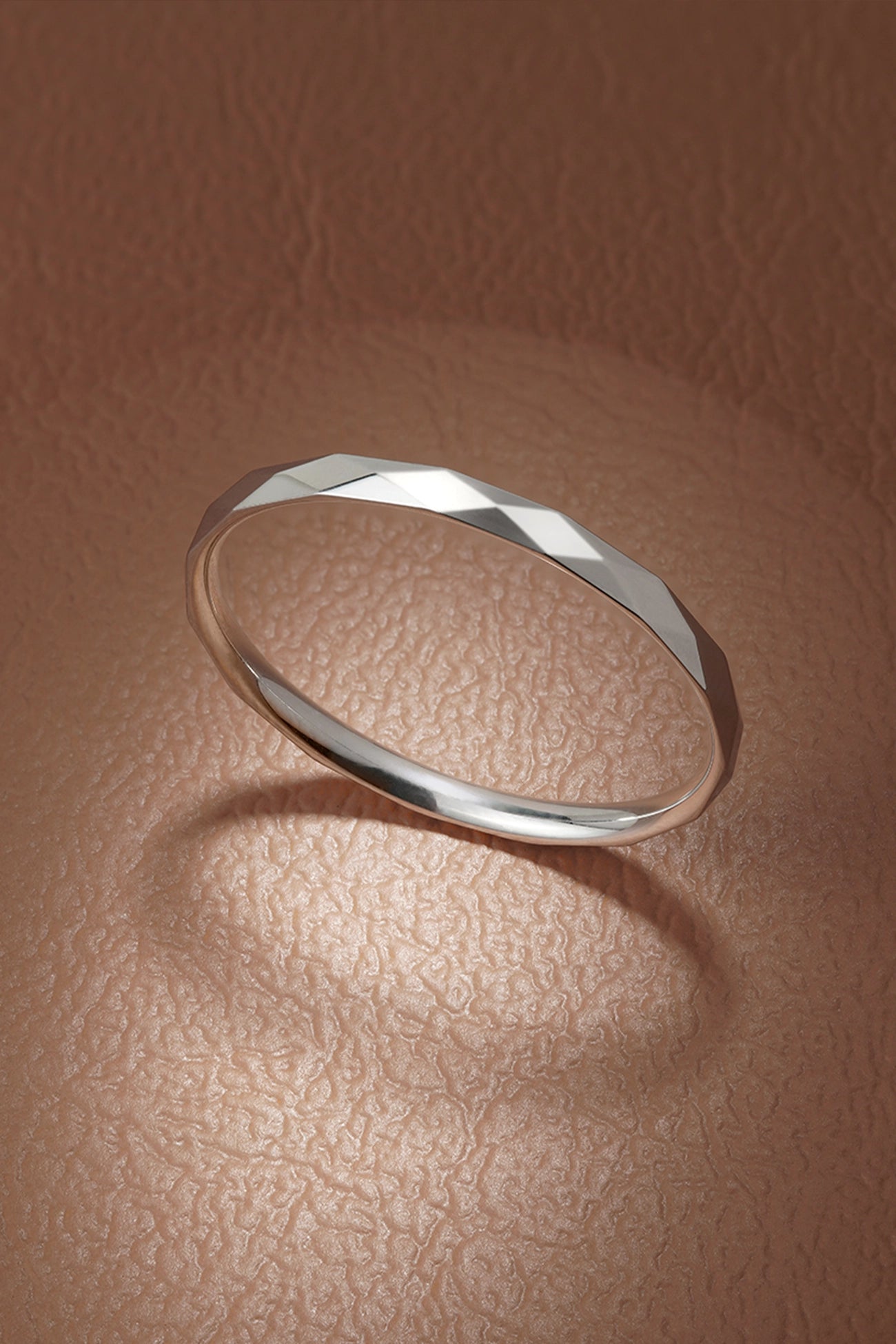 This faceted stacking ring catches the light and shimmers from every angle, adding texture and shine to any stack. The sculpted surface gives it a bold edge while staying easy to wear.