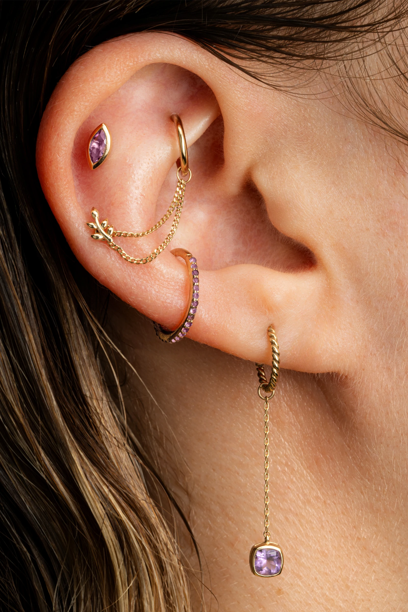 Crafted from solid 14ct gold or white gold with natural amethyst stones.