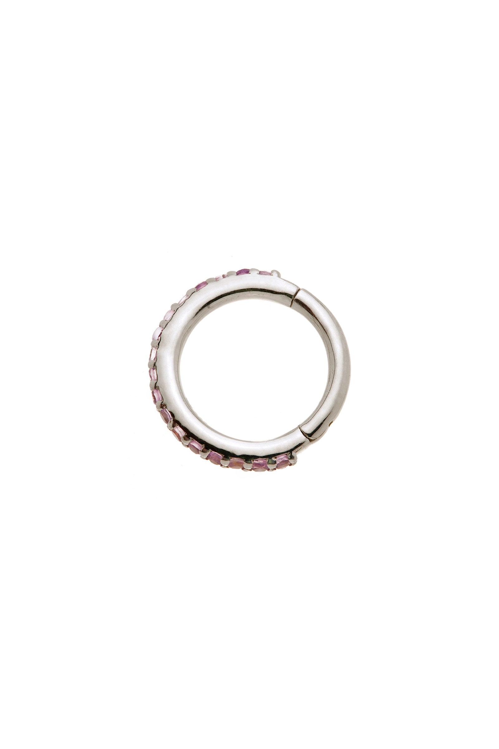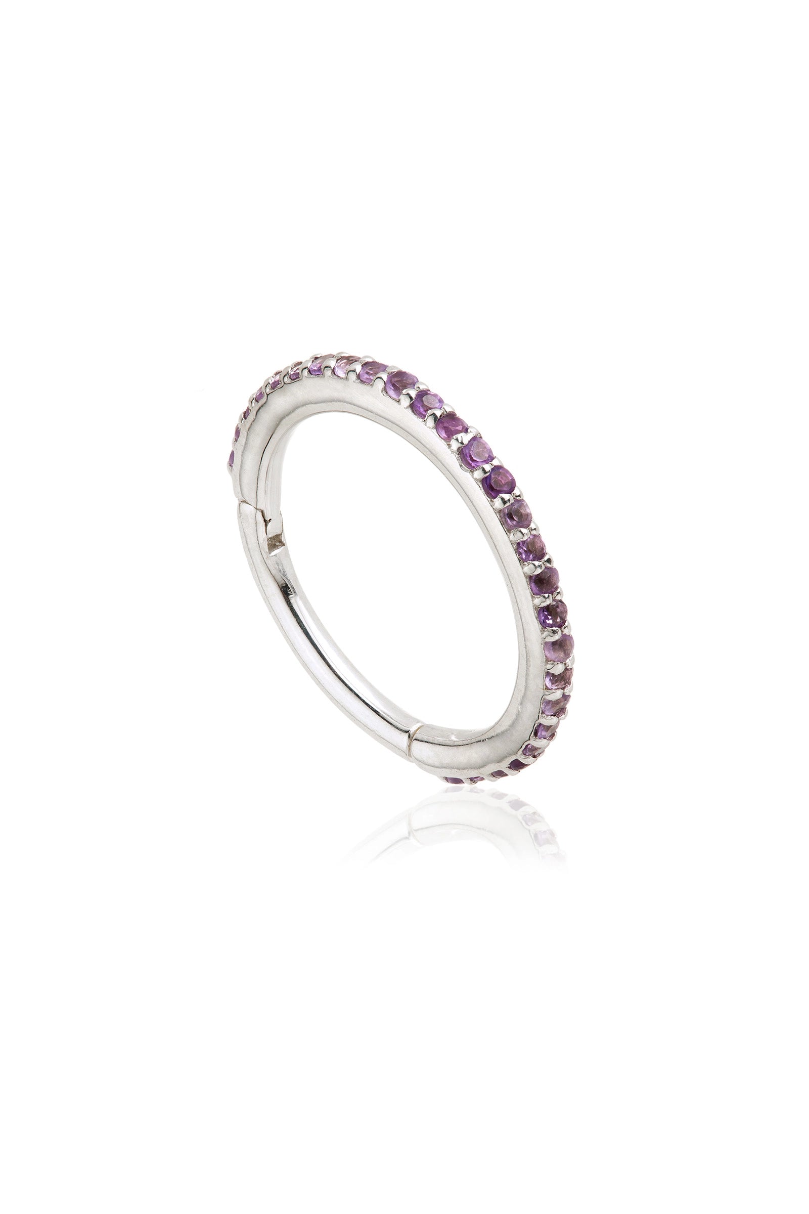Solid 14ct Gold Pavé Amethyst Eternity Hinged Ring - White Gold