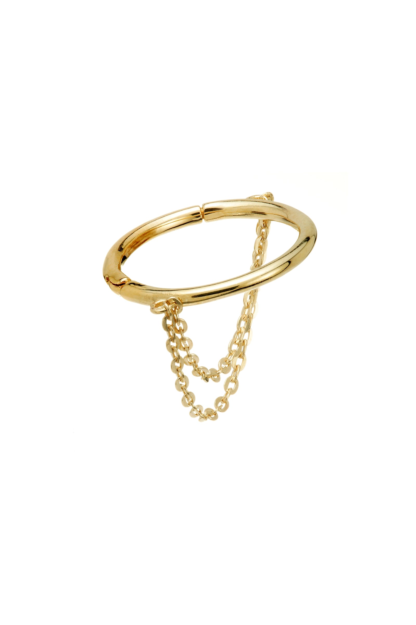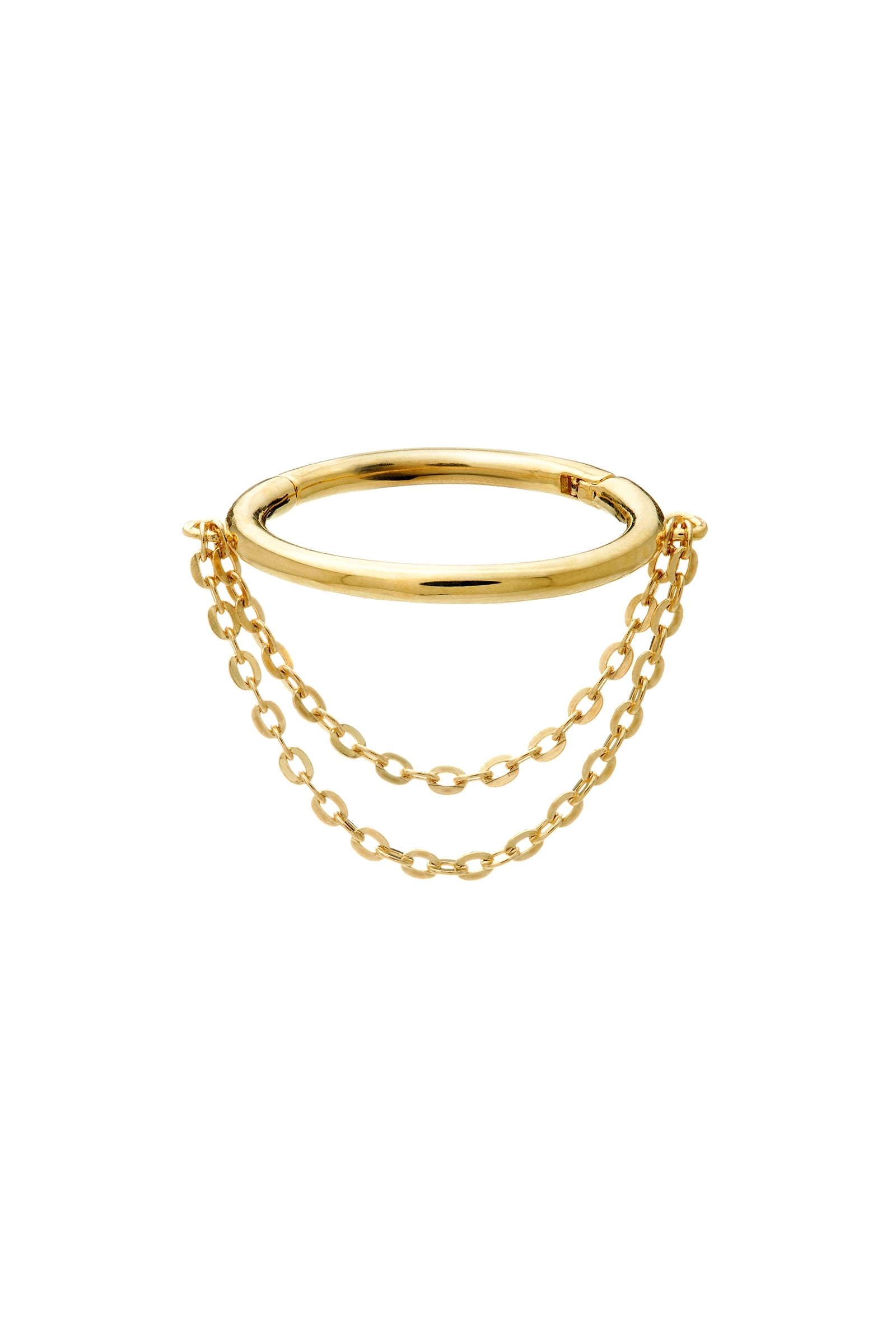 Solid Gold Hinged Conch Ring with Double Hanging Chains - Gold