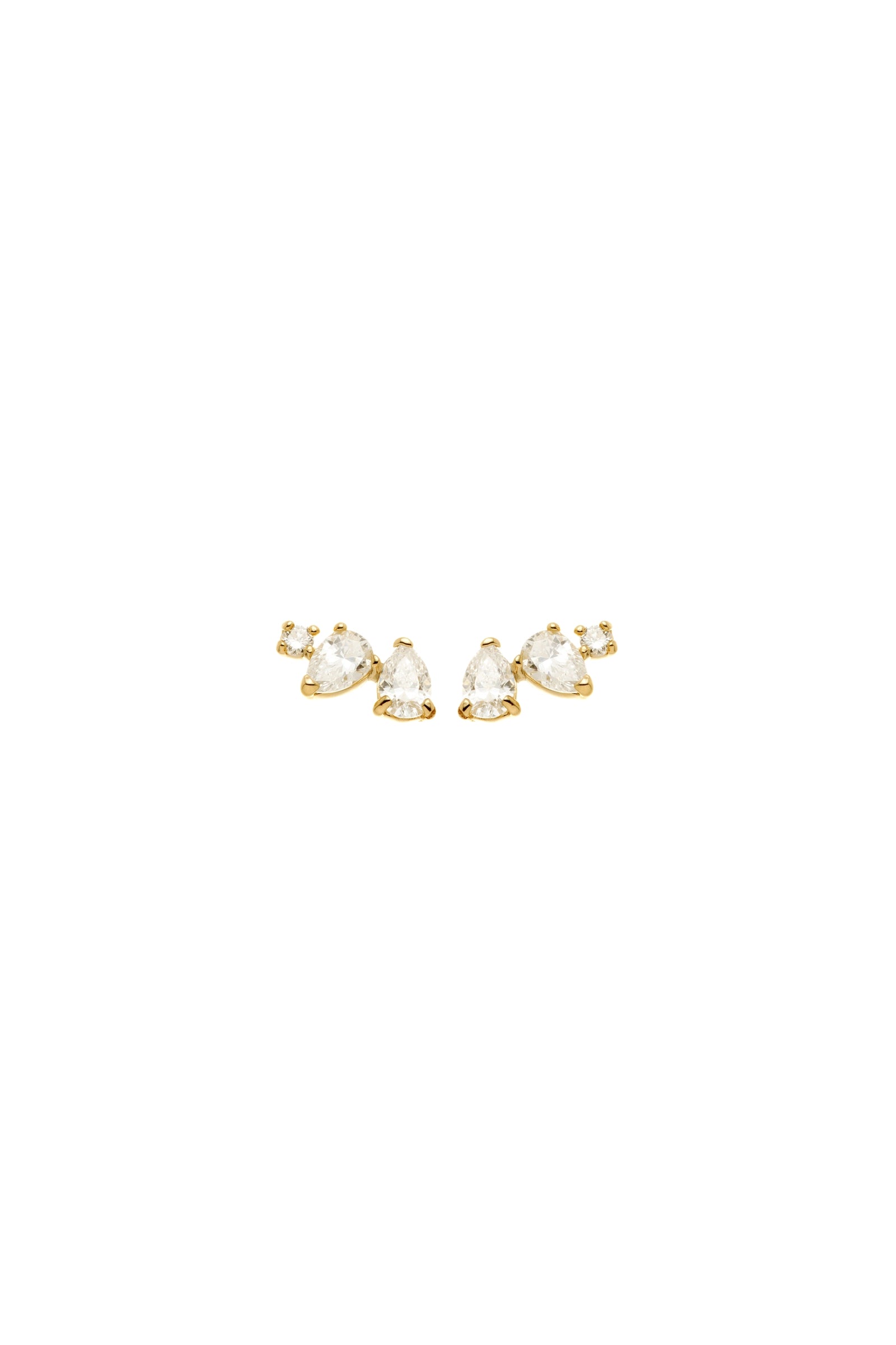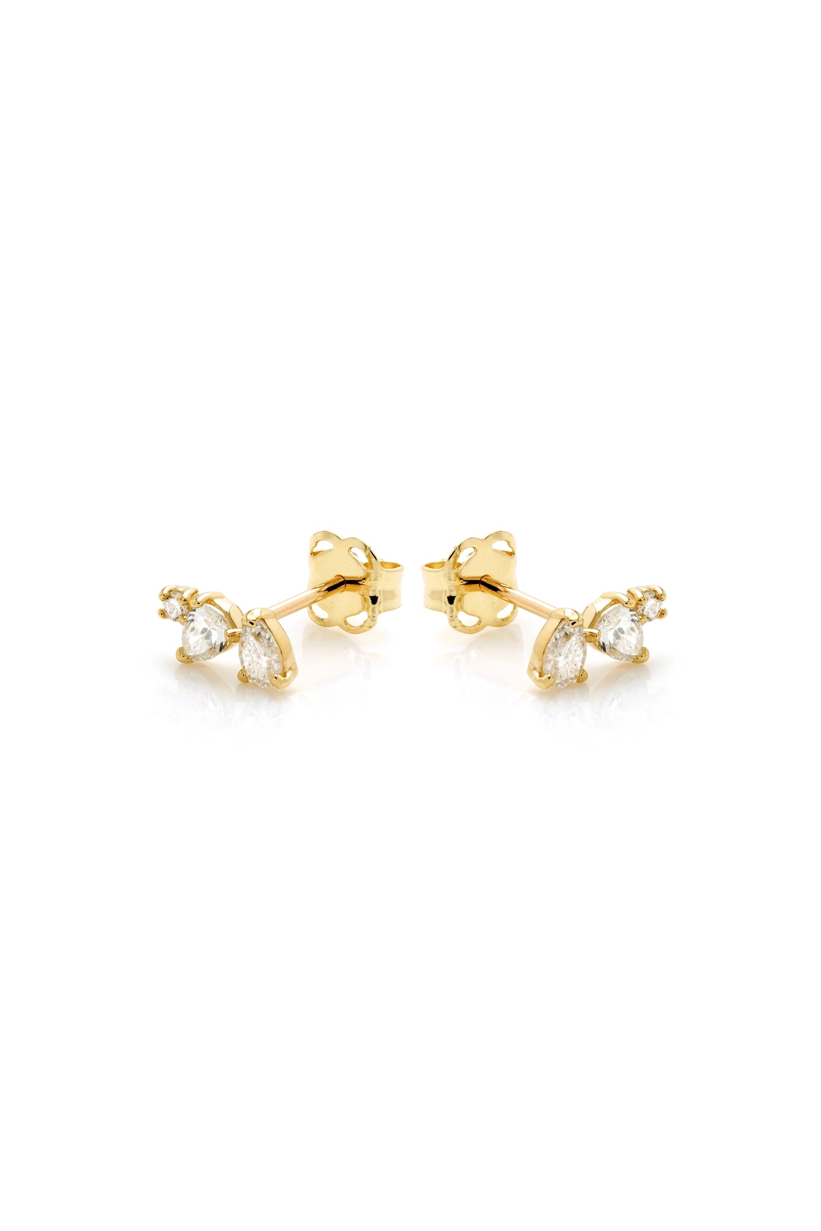 A delicate yet dazzling addition to your ear stack. These solid gold cluster studs feature pear-cut diamonds and a brilliant-cut diamond arranged in an elegant arc – can be worn solo to add some sparkle, or stacked with other pieces for a unique look.