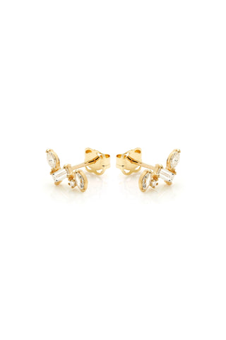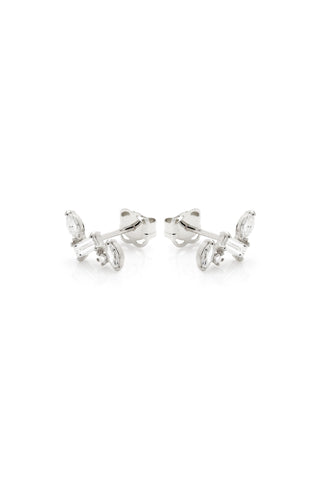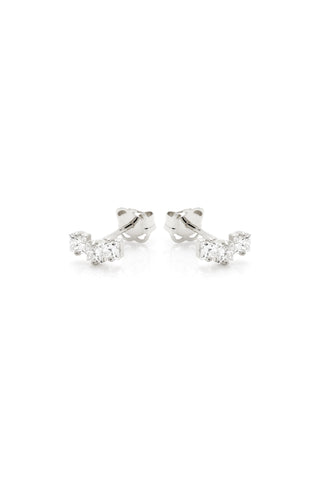 Solid 14ct Gold Marquise Diamond Climber Stud Earrings - White Gold