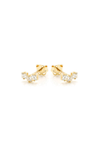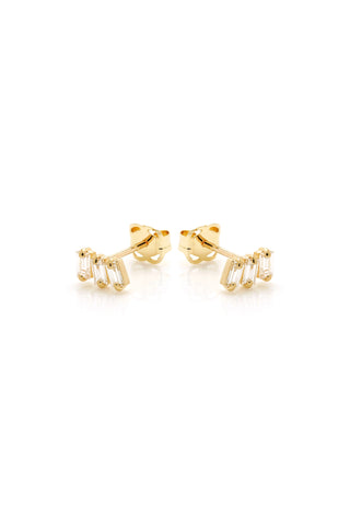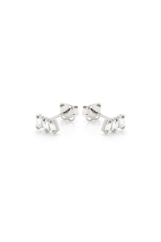 Solid 14ct Gold Triple Baguette Diamond Stud Earrings - White Gold