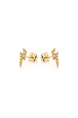 Solid 14ct Gold Lightning Bolt Threadless Flatback Stud Diamond Earring - Gold