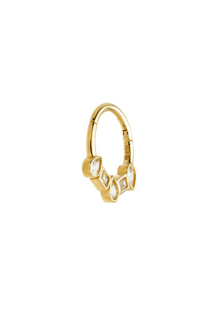 Solid Gold Square and Pear Jewelled Daith & Septum Ring - Gold