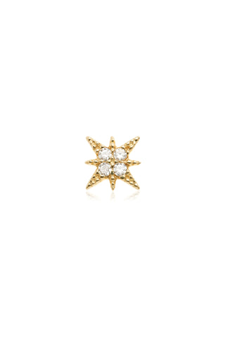 Solid Yellow Gold Threadless North Star with Titanium Flat Back Stud Earring
