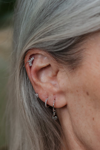 Jewelled Crescent Moon 14ct Solid White Gold Barbell Earring with Screw on Heart Back