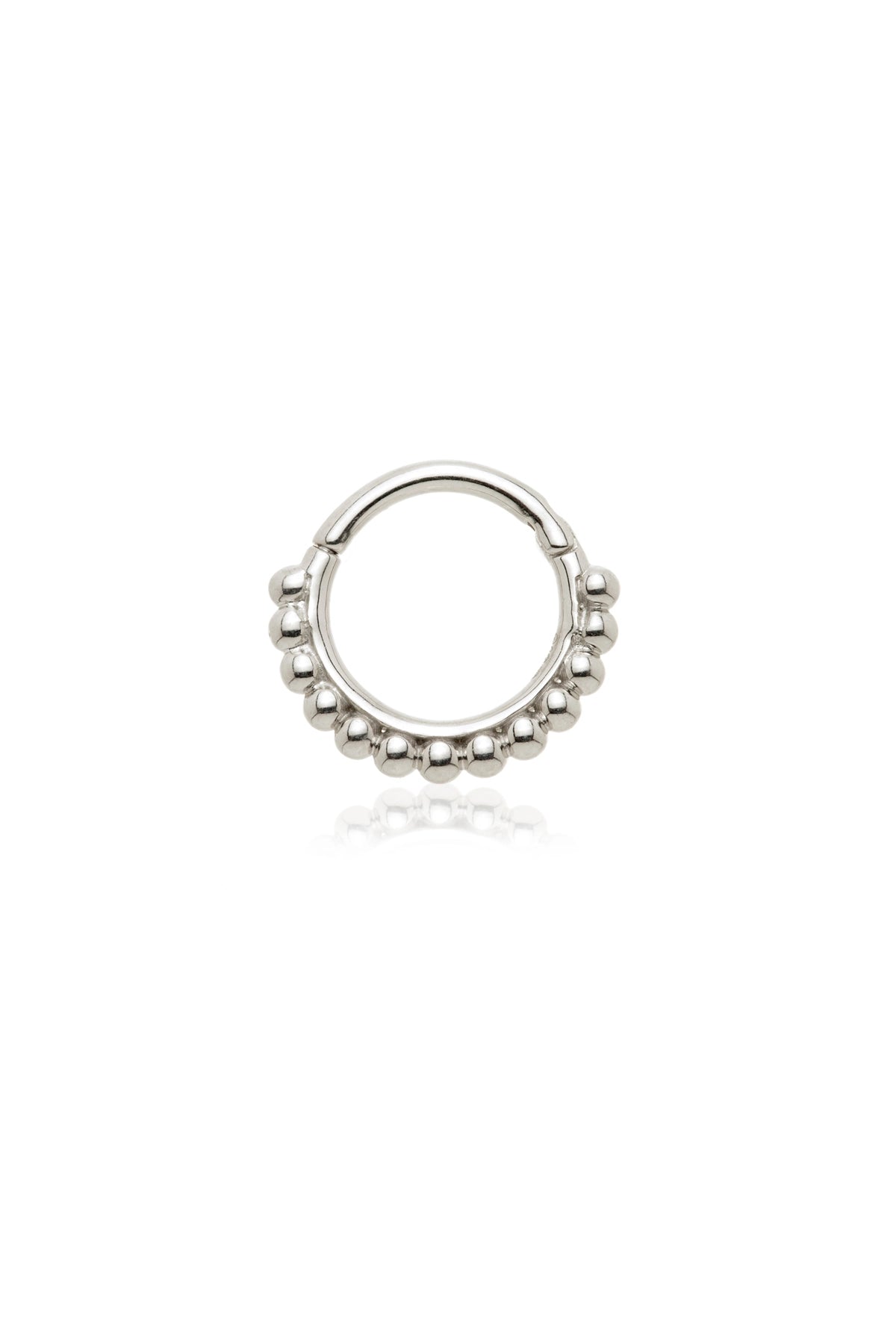 A row of small polished balls wraps around this solid white gold daith and septum ring - minimal, textured and full of character.
