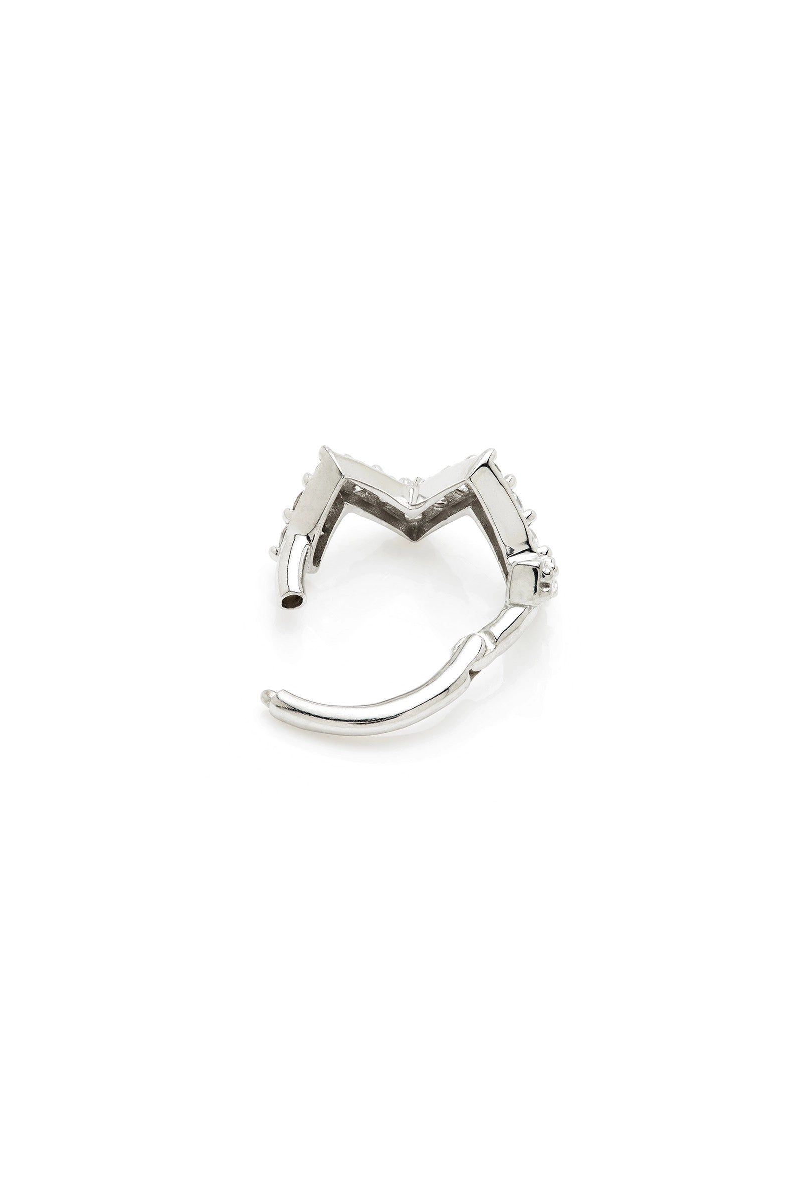A stepped zig-zag pattern set with pavé cubic zirconia gems gives this hinged earring a clean geometric edge. Designed to sit close and curve naturally into your stack.