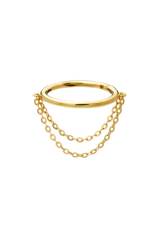 Solid Gold Conch Ring with Double Hanging Chains - Sibling