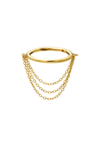Solid Gold Conch Ring with Triple Hanging Chains - Sibling