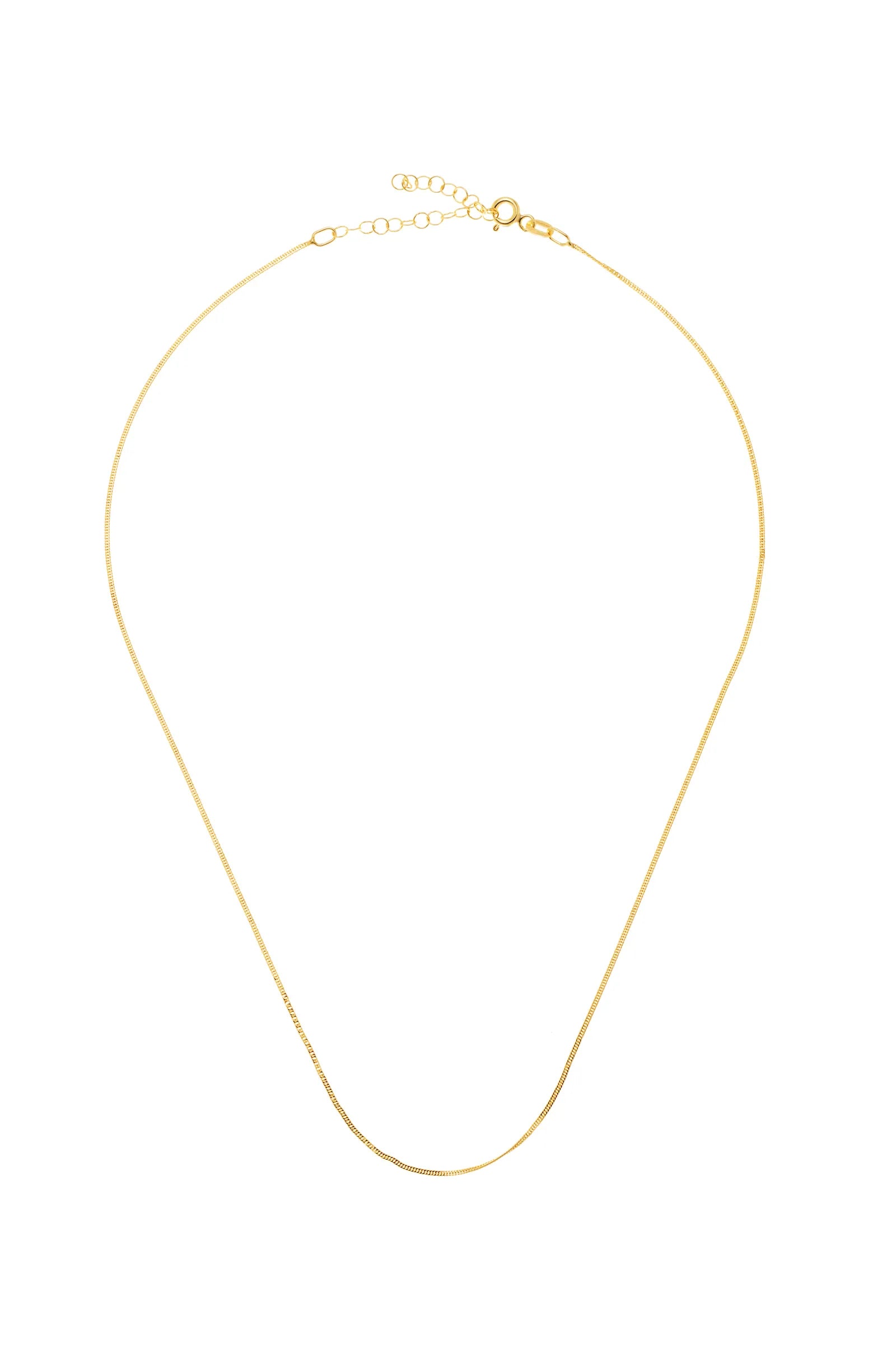 This solid gold curb chain necklace is a clean, easy piece perfect for everyday wear or special moments. The classic interlocking links create a smooth, fluid line that sits neatly against the skin, catching the light with a subtle shine.