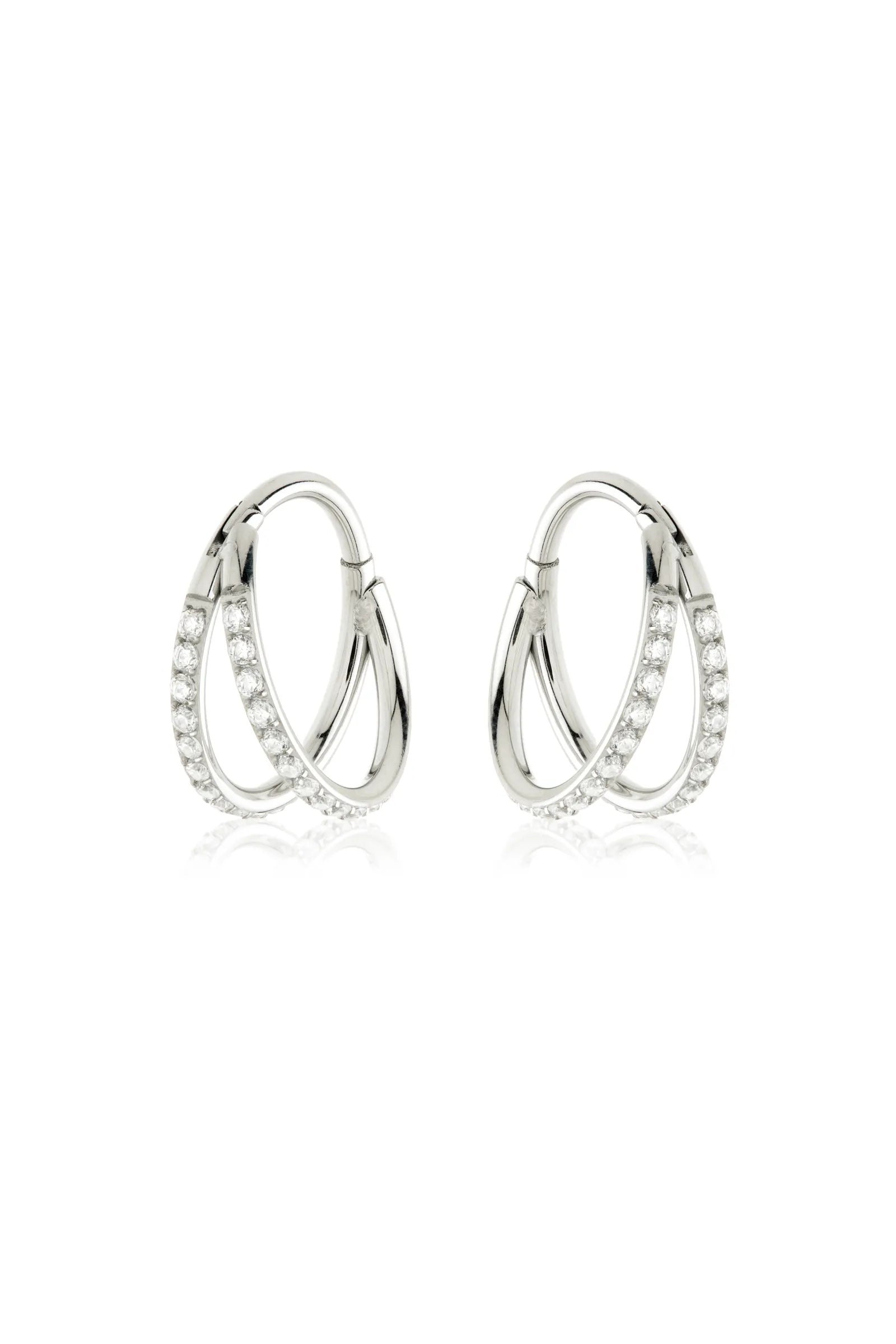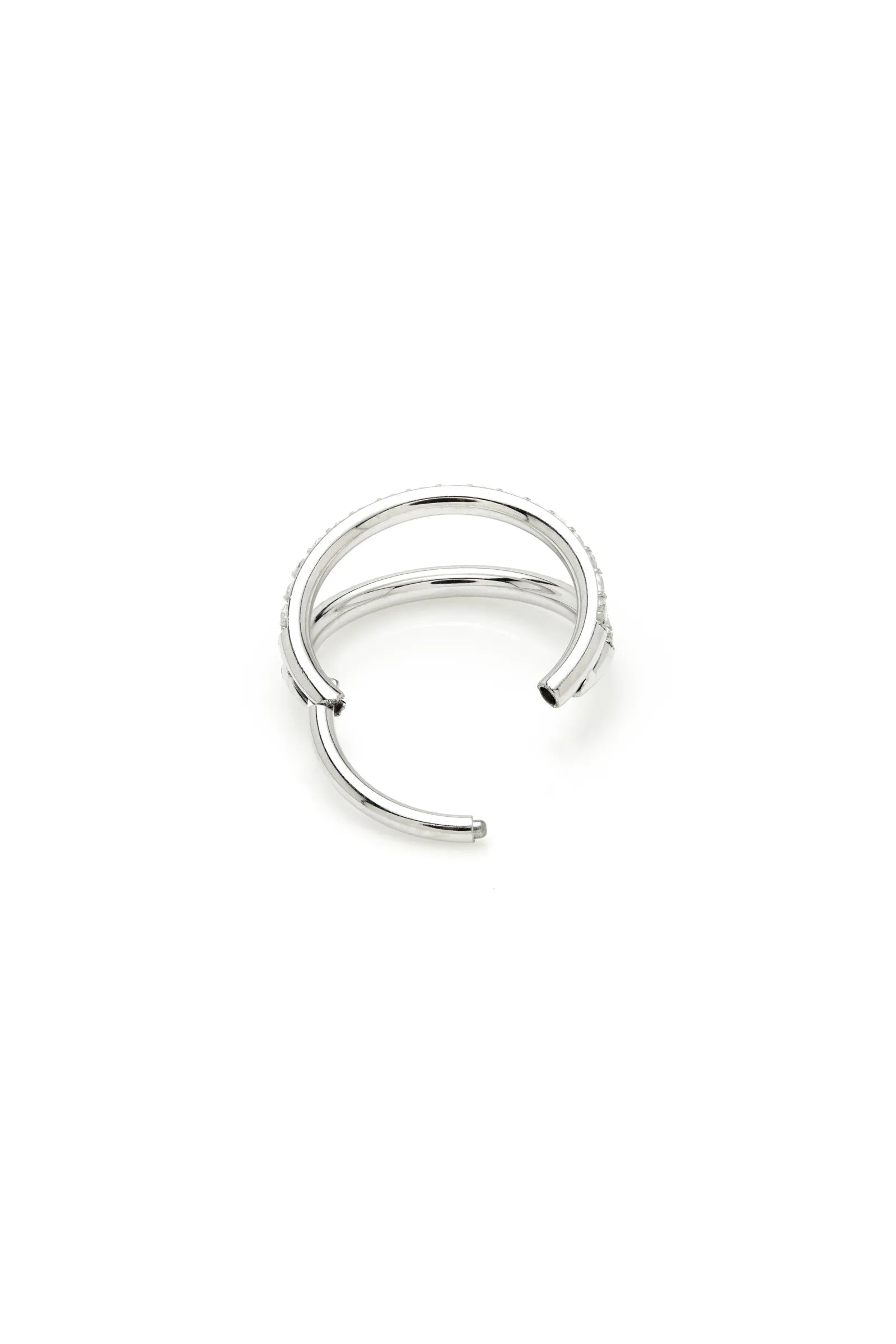 A subtle sparkle in a bold shape. These highly-polished titanium double-band hoop earrings feature a double-band design with rows of sparkling gemstones. Lightweight, comfortable and suitable for long-term wear.
