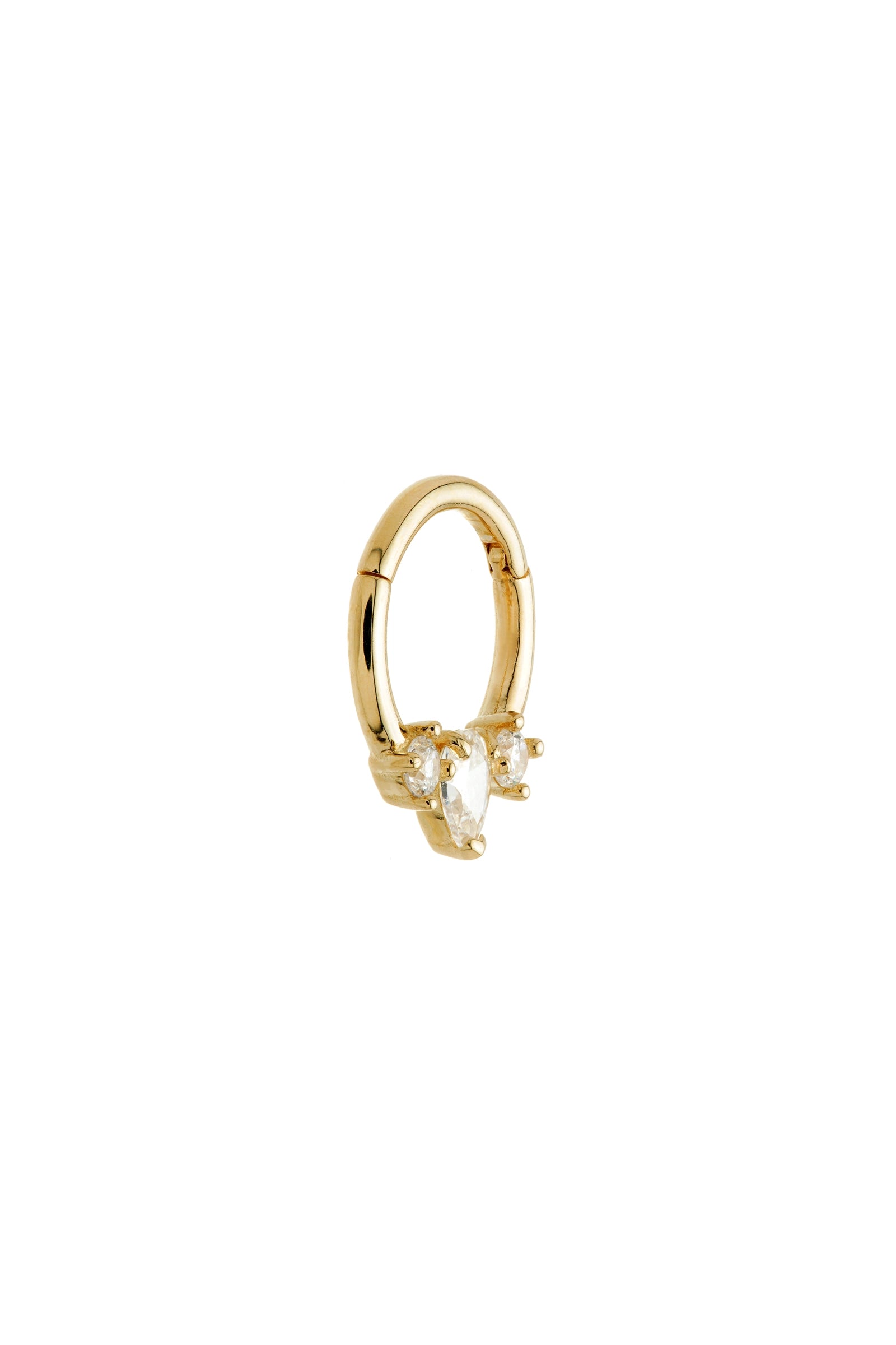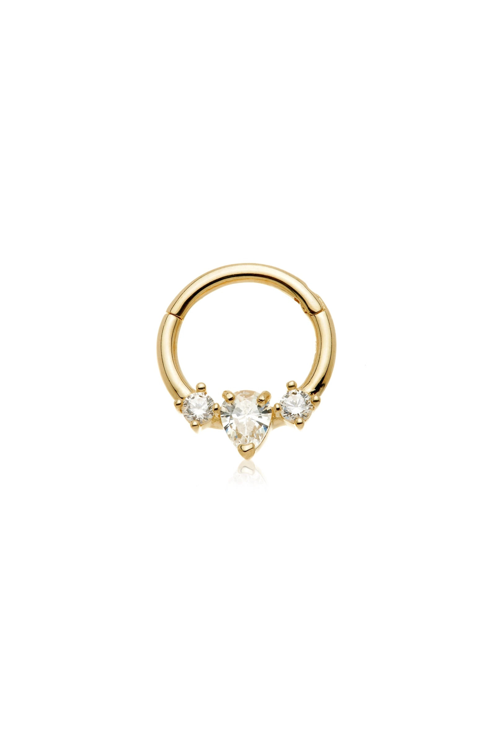 A teardrop-shaped and two round-cut cubic zirconia stones add a little twinkle to this solid gold daith ring - designed to sit close and shine subtly in daith and septum placements.